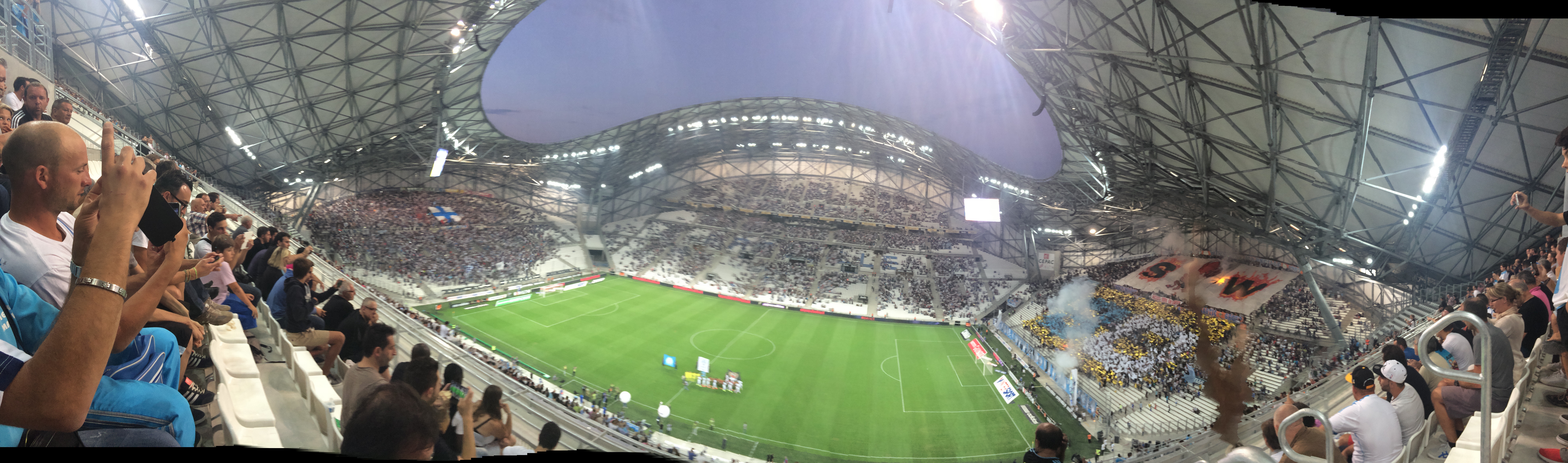 Contrairement à beaucoup, de ma place j'entendais plutôt bien la sono sans trop de brouhaha et j'entendais super bien les chants des virages.
