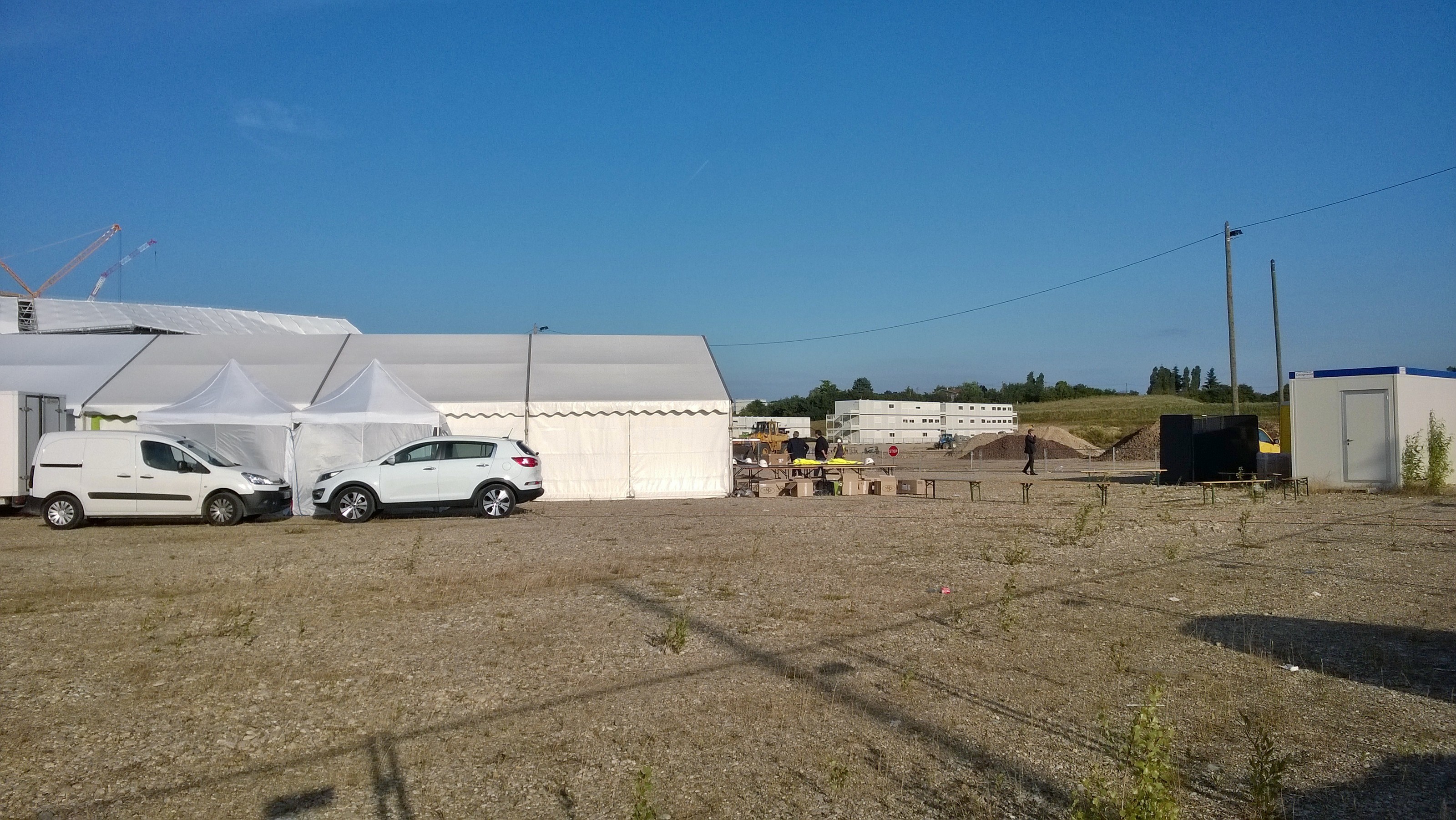 Virage Nord Arrivée du tram Emplacement des futurs des hôtels Virage Ouest Visite "p'tits fours/champagne" au programme visiblement