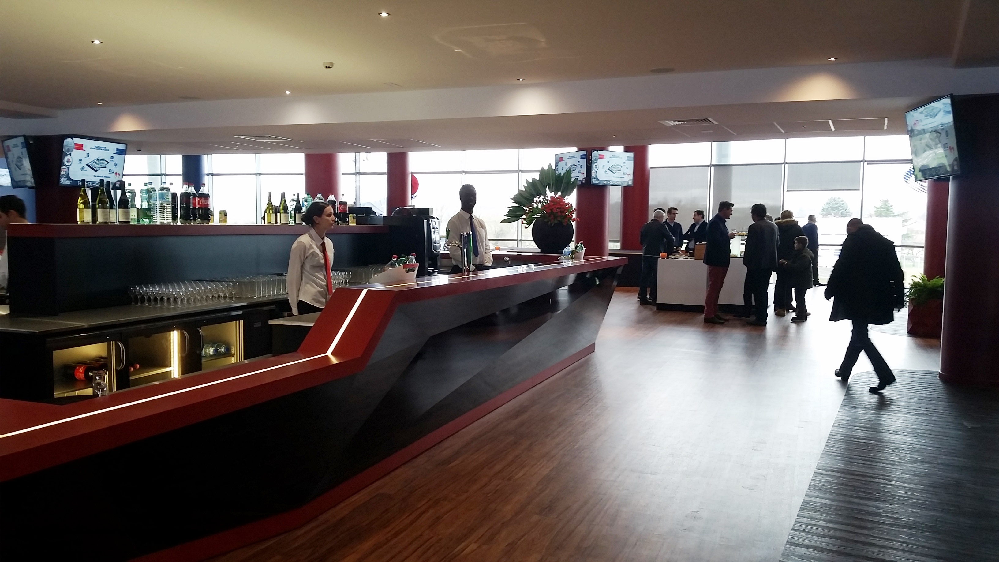 Terrain vu de l'intérieur du Cercle OL Bar central du Cercle OL Toujours le Cercle OL Encore le Cercle OL avec la coursive des loges juste au dessus Un peu de vert