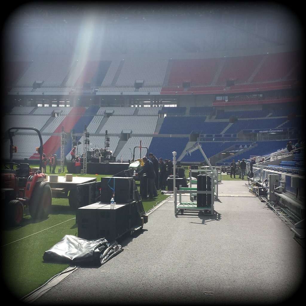 Photo d'OLTV de la mise en place de la scène de Christophe Maé