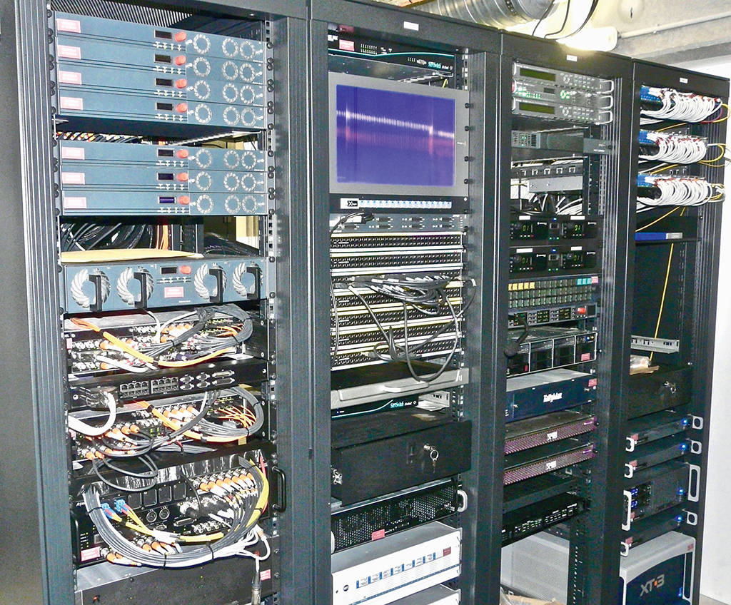 La gestion des intercoms est confiée à une matrice Artist de Riedel, entièrement fondue dans le réseau MediorNet au travers d’une passerelle MADI. L’intercom comprend également des systèmes Partyline numérique Performer, et des modèles sans fil en technologie DECT de la gamme Acrobat. Grâce à l’étendue du réseau MediorNet, les pupitres, boîtiers ceintures et antennes DECT peuvent être installés dans n’importe quelle régie ou lieu desservi.