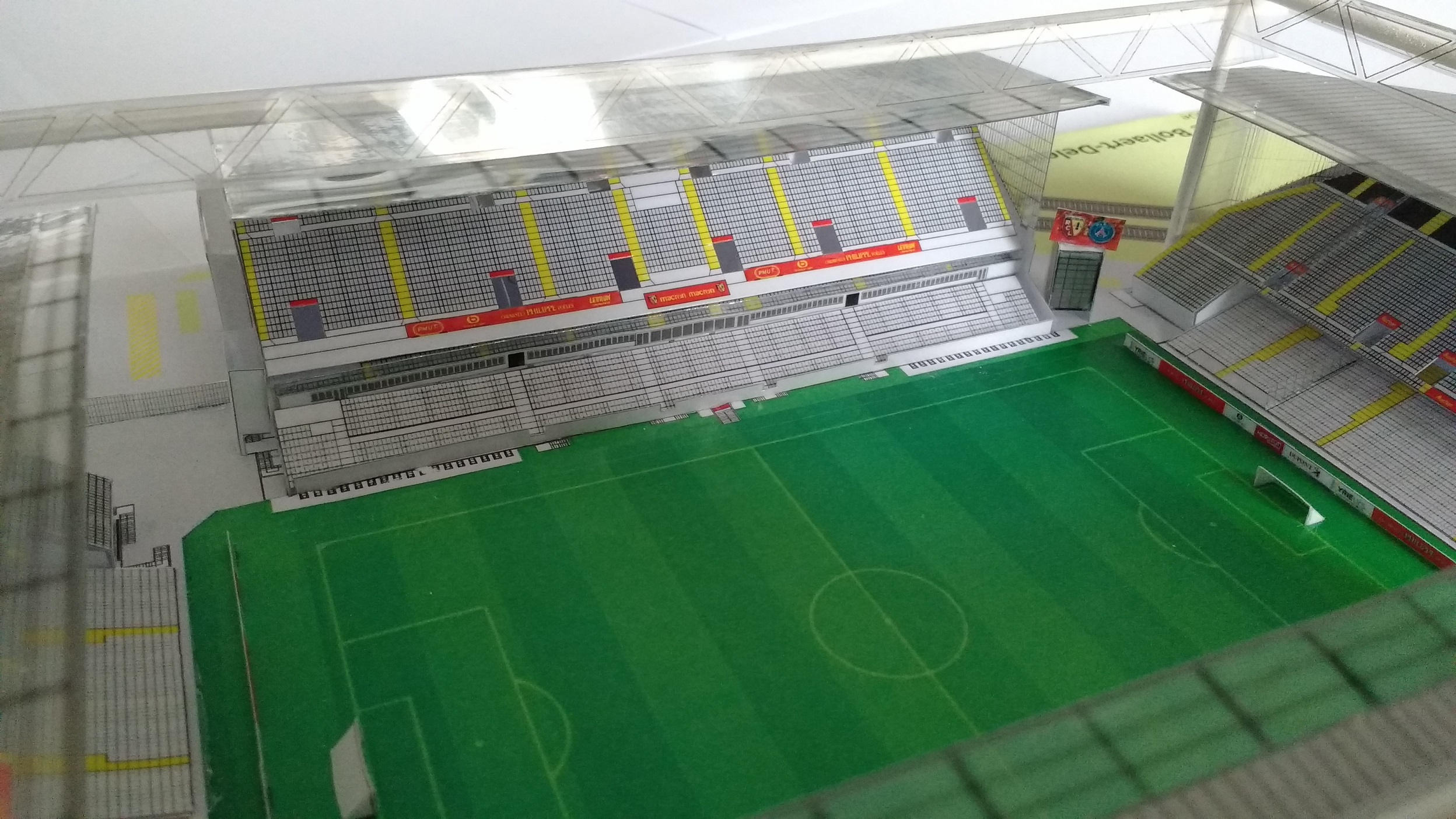 Quelques vues de la nouvelle version de ma maquette du Stade Bollaert Delelis de LENS (sponsors 2018-2019, Marek debout, logos sur extérieur de tribunes, ...)