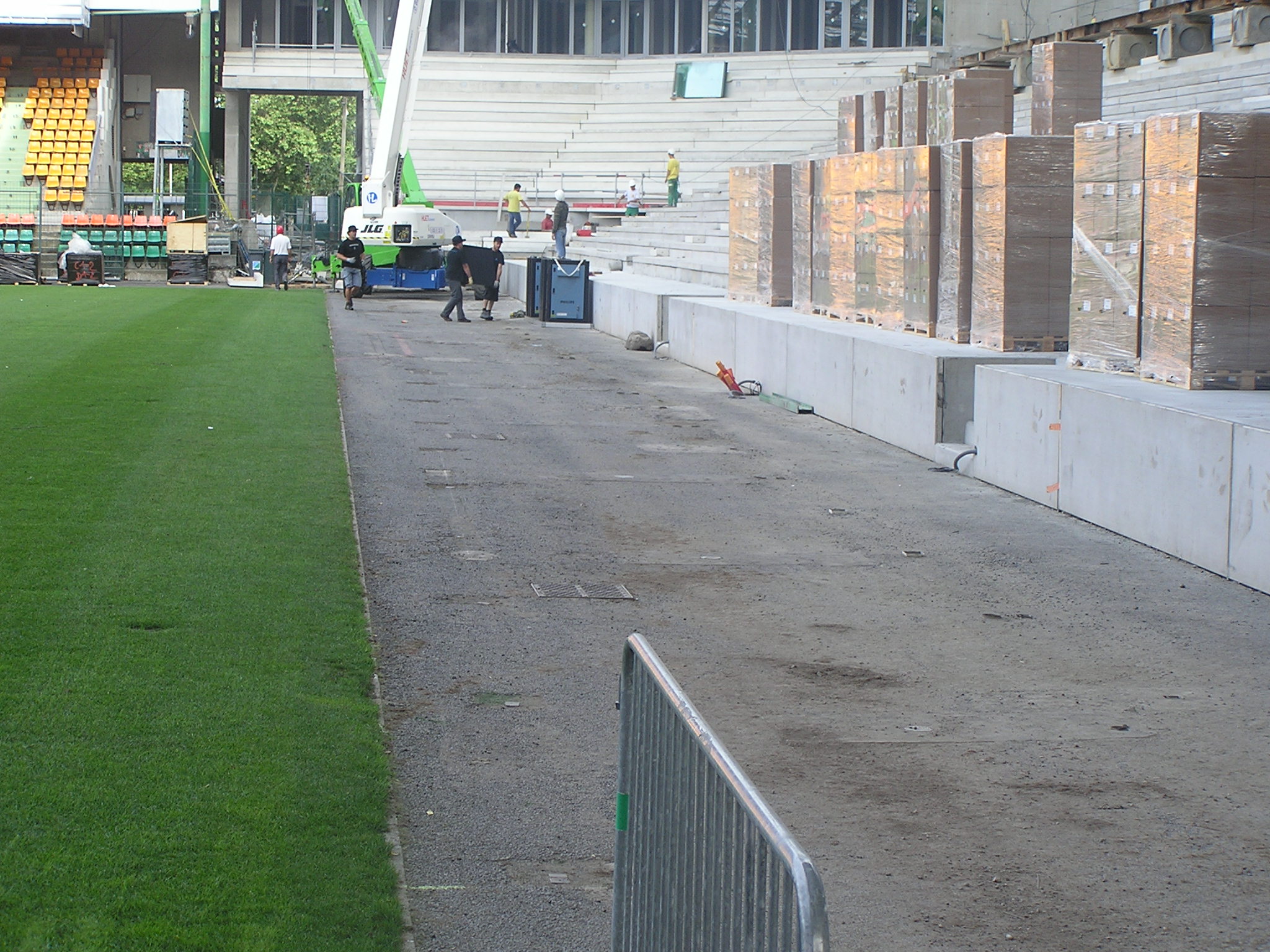 je suis passé vers midi et la pose des petits gradins en bas de l'angle "loges" était terminée. ça finit super bien cet angle