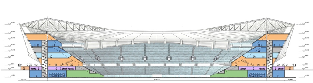 La capacité de ce stade devrait avoisiner les 45 000 places.
