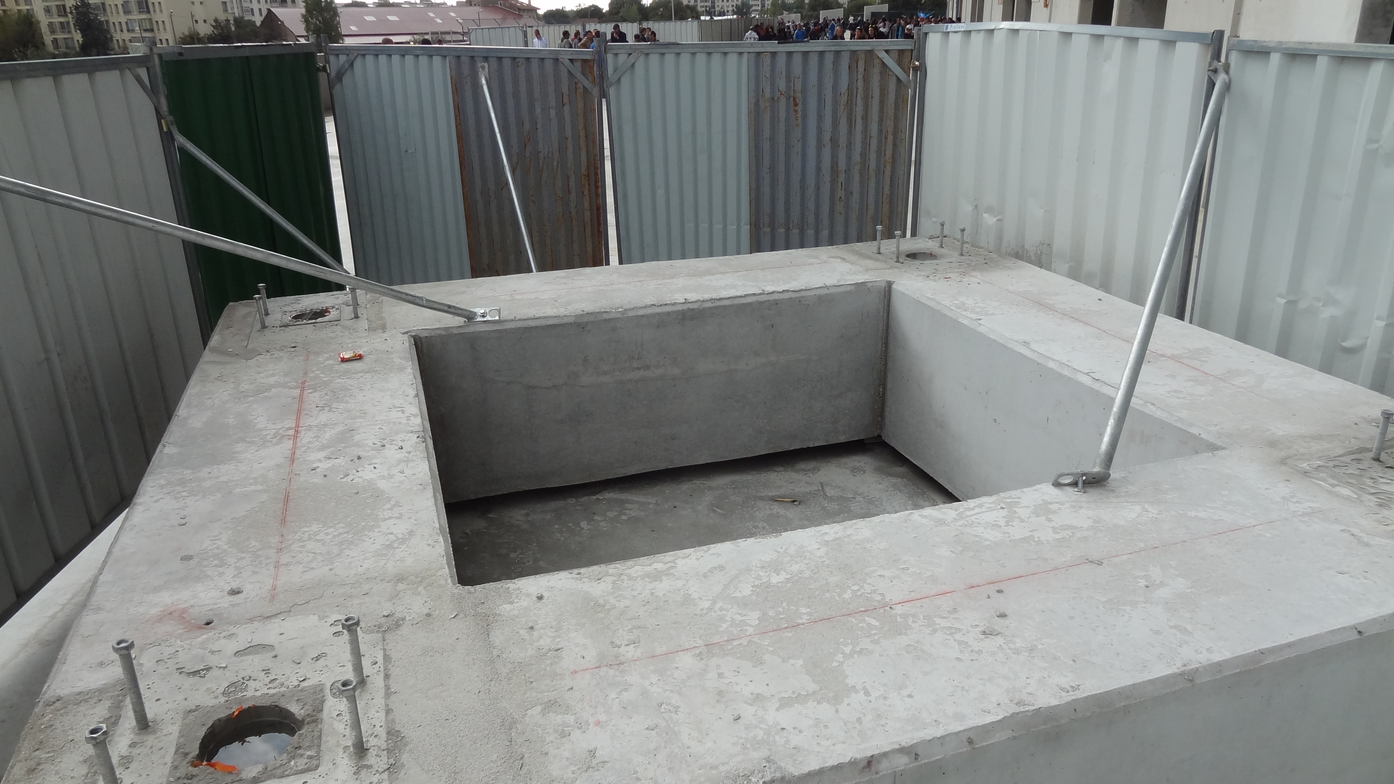au dessus de l'ambulance : 2 bouches de ventilation + échafaudage pour pose du toit