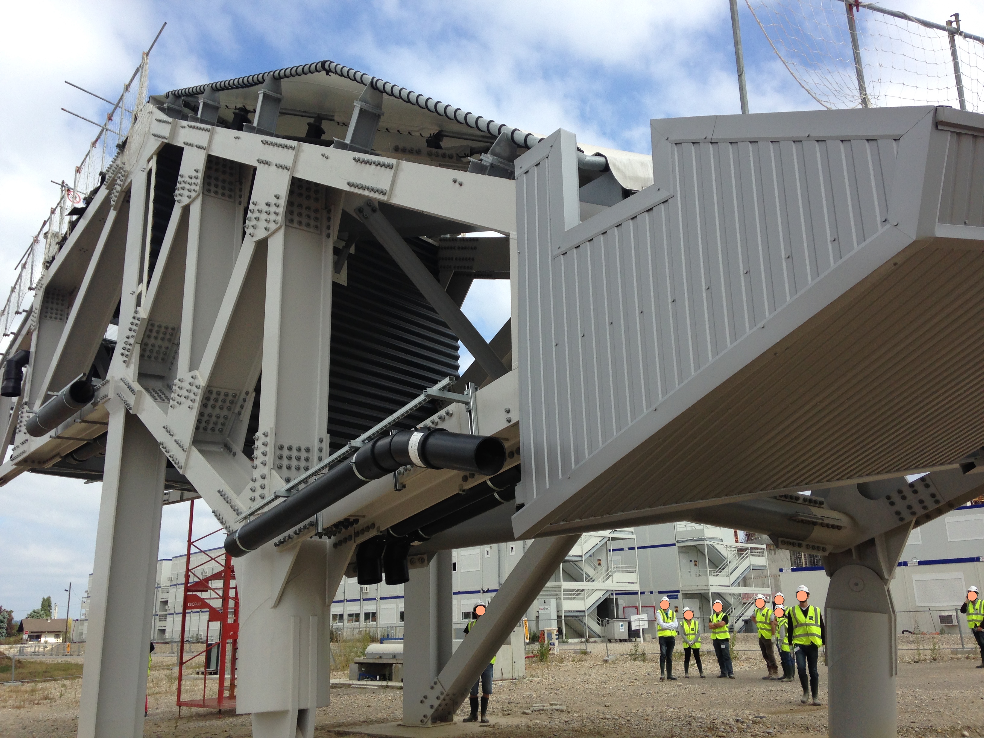 Les photos du prototype sont très intéressantes. Elles montrent la présence d'un bardage isolant qui couvrirait la sous face des poutres radiales, la partie transparente se suffisant bien à elle même. Mais dans le dernier Grand Stade le Mag, on apprend que la zone des protos permet de confronter certains choix techniques ou esthétiques. On n'a donc pas la certitude de la présence de ce bardage en auscultant le prototype mais plutôt en regardant les dernier rendus publiés par OLGroupe.
