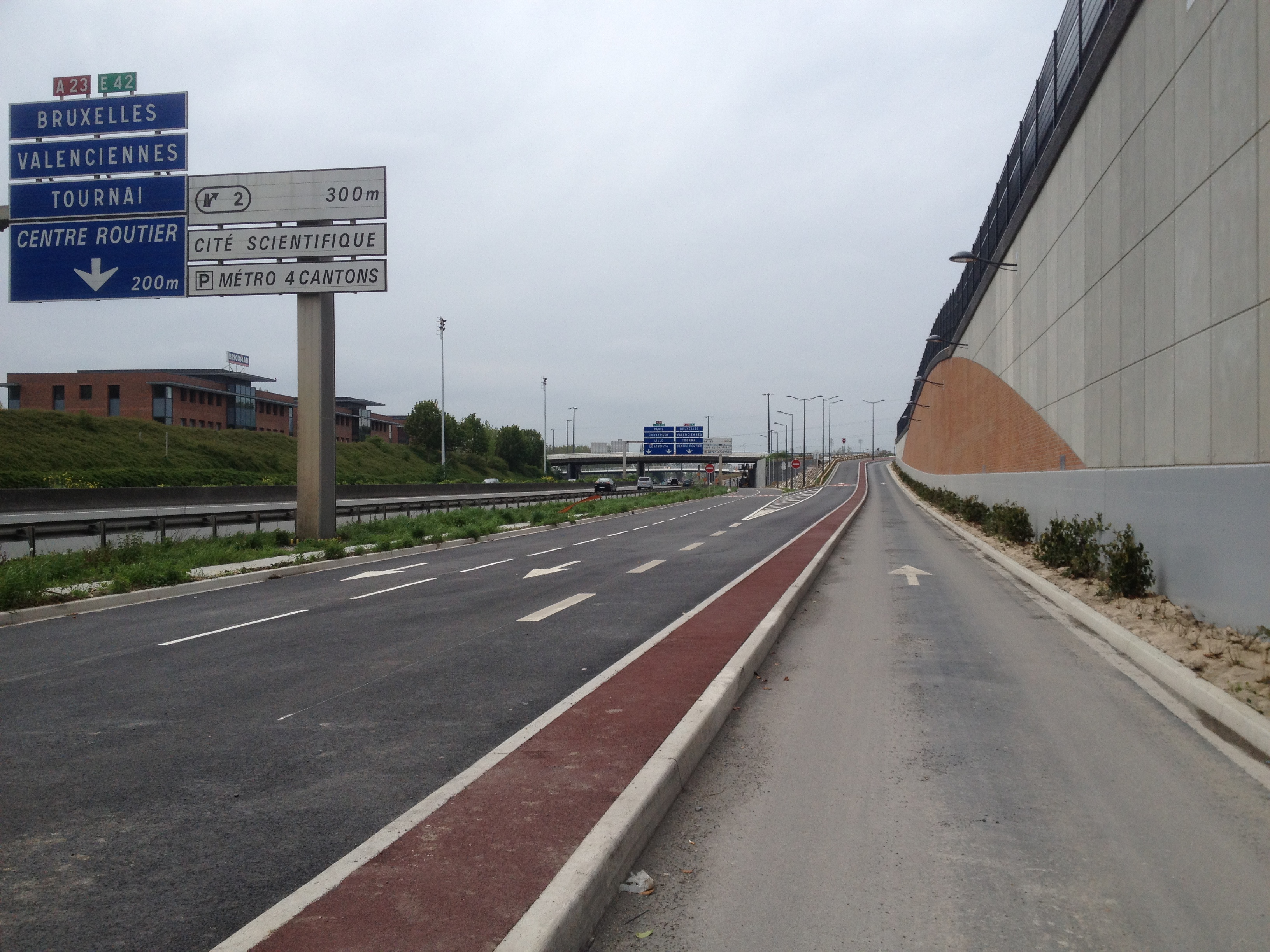 2) Ensuite, la RN est en train d'être coupée devant le stade dans le sens 4 cantons - Belgique juste avant le pont du bld de Tournai et nous oblige à prendre la contre-allée ... je n'ai pas vu ce qu'ils allaient faire![]()