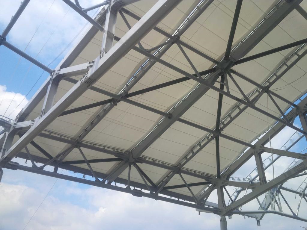 On dirait que le bardage vertical des tribune sera fait avec le meme genre de tole perfore qu'il on utilisé pour la couverture