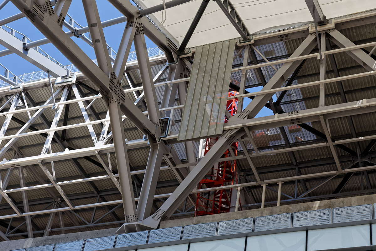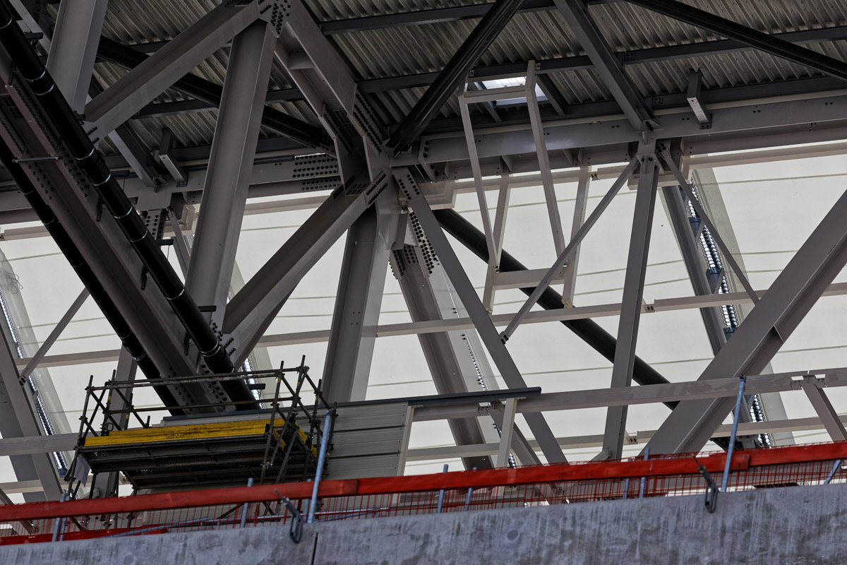 Fin de la série : j'ai souhaité mettre en évidence certains détails comme la jonction entre les blocs ouest et nord, les blocs techniques d’éclairage et de sono, la différence de surface avant après au niveau des loges, la préparation pour la mise ne place des passerelles d'accès au parvis...