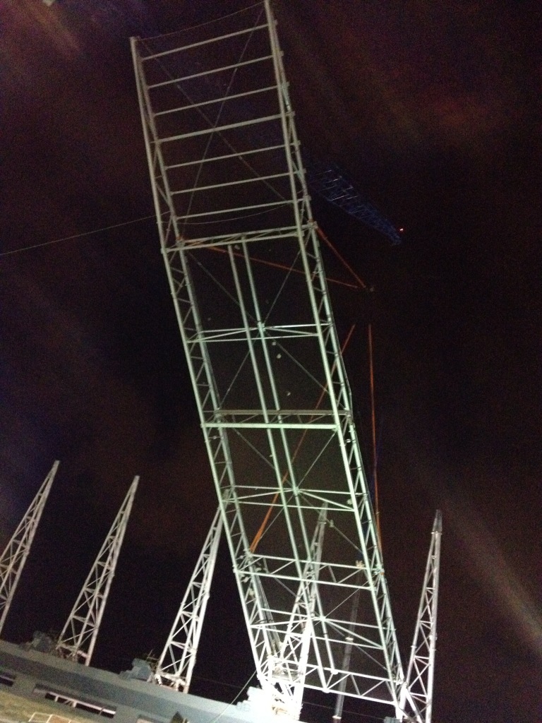 La structure qui va couvrir les tribunes est en-cours d'installation