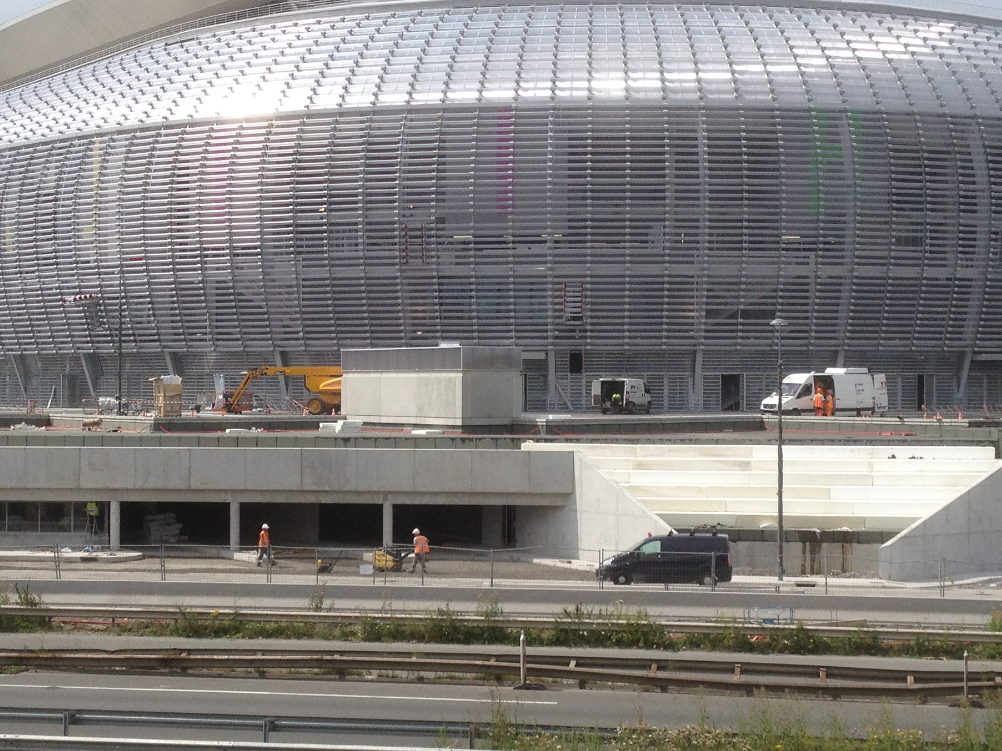 - Stade : pose des tubes en cours. Reste 12 colonnes de supports de tube à poser sur la façade et 18 côté hotels. Supports et tube devraient être finis de posés samedi midi.