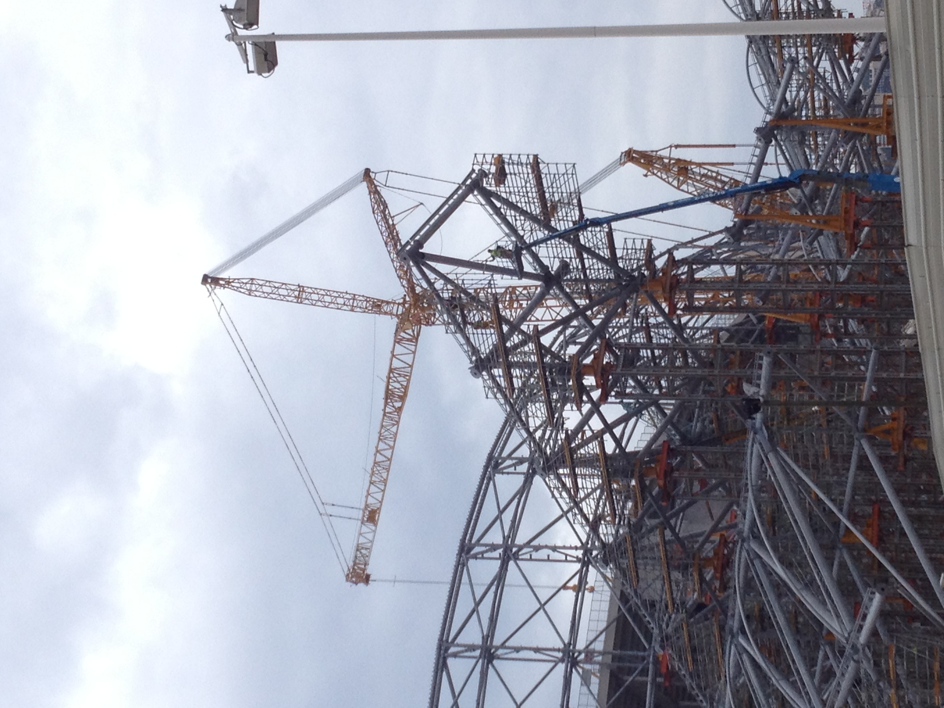 Je vois qu'ils commencent à assembler le 4ème colis simple sur la nouvelle station de montage. Il y a des 1/2 radiales dont une en cours de pose au bout de grues mobiles.