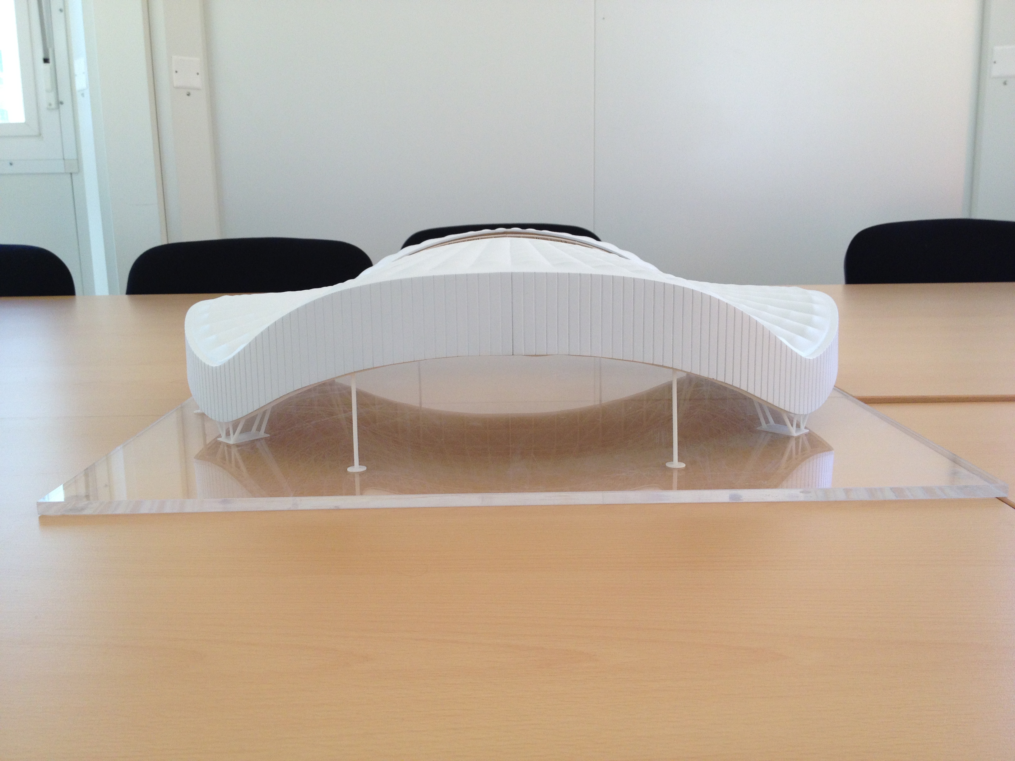 Réponse : En fait les deux versions de toiture (lisse et avec arceaux) existent depuis le début du projet. Mr Botella a justifié qu’ils avaient finalement opté pour la version avec des arceaux pour des raisons techniques (et pas financières puisqu’il y a des éléments en plus dont c’est plus cher). A savoir que de toute façon du sol les arceaux ne seront quasiment pas visibles.