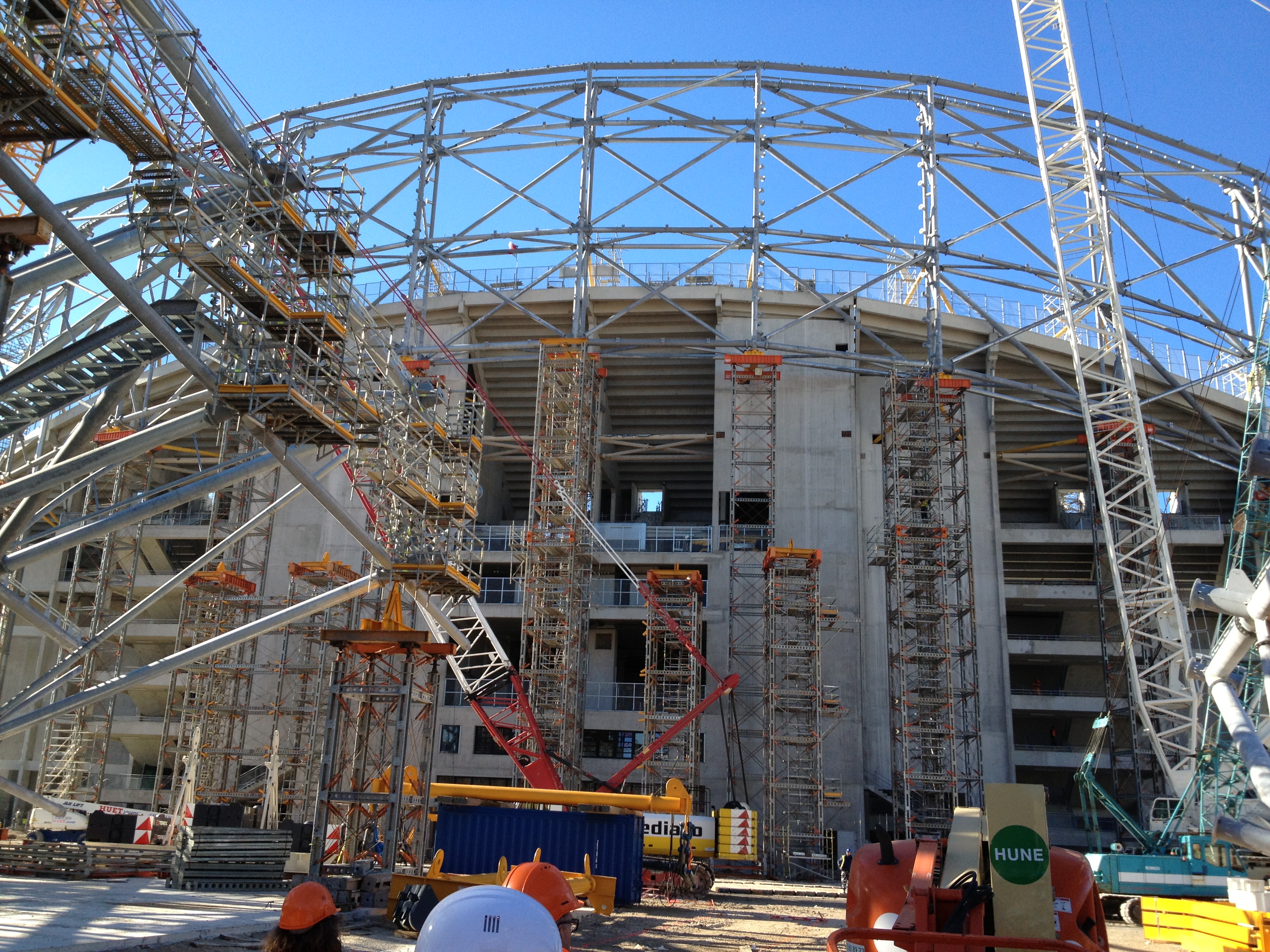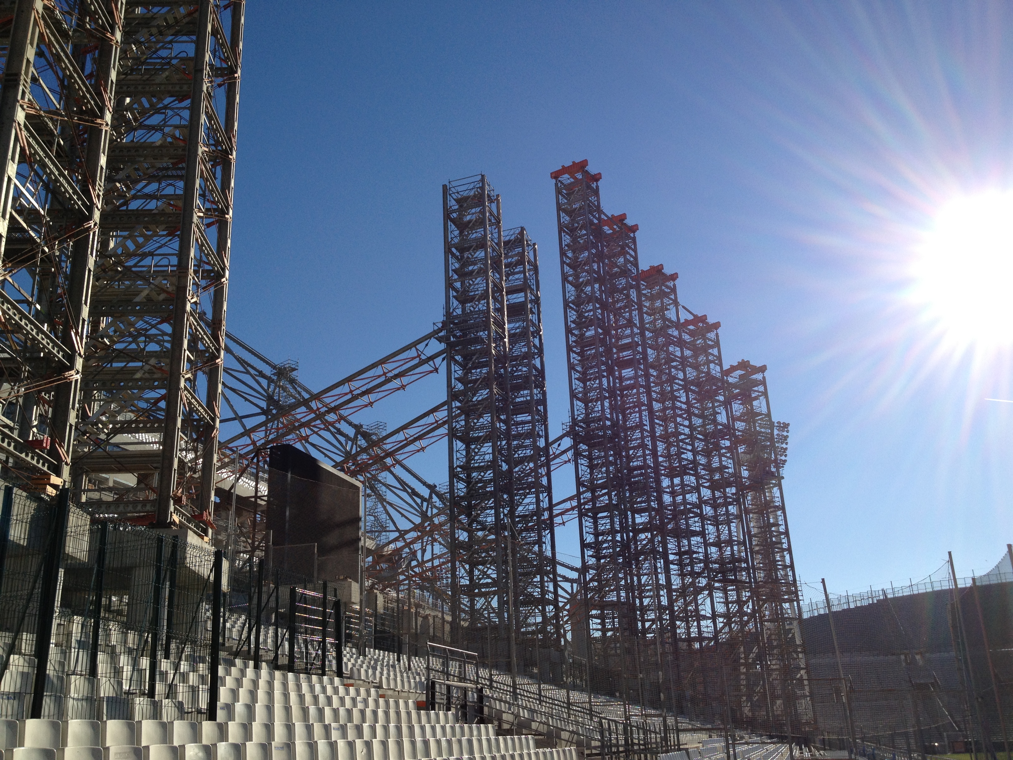 Réponse : Parce qu’ils veulent commencer à monter des colis de la charpente du VN pendant les derniers matchs de la saison. Le but étant d’avoir fini la charpente des deux virages terminée avant la reprise de la saison 2013-2014.
