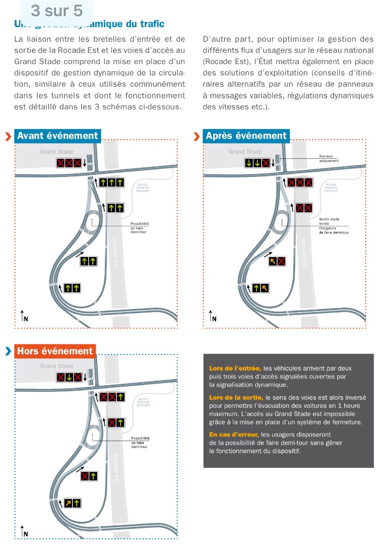 Venant en voiture pour me garer au parking P5 le 09/01, je remets cette photo qui montre bien le fonctionnement de la route autour du stade, il change le sens de circulation entre l'avant et l'après match. C'est bien foutu.
