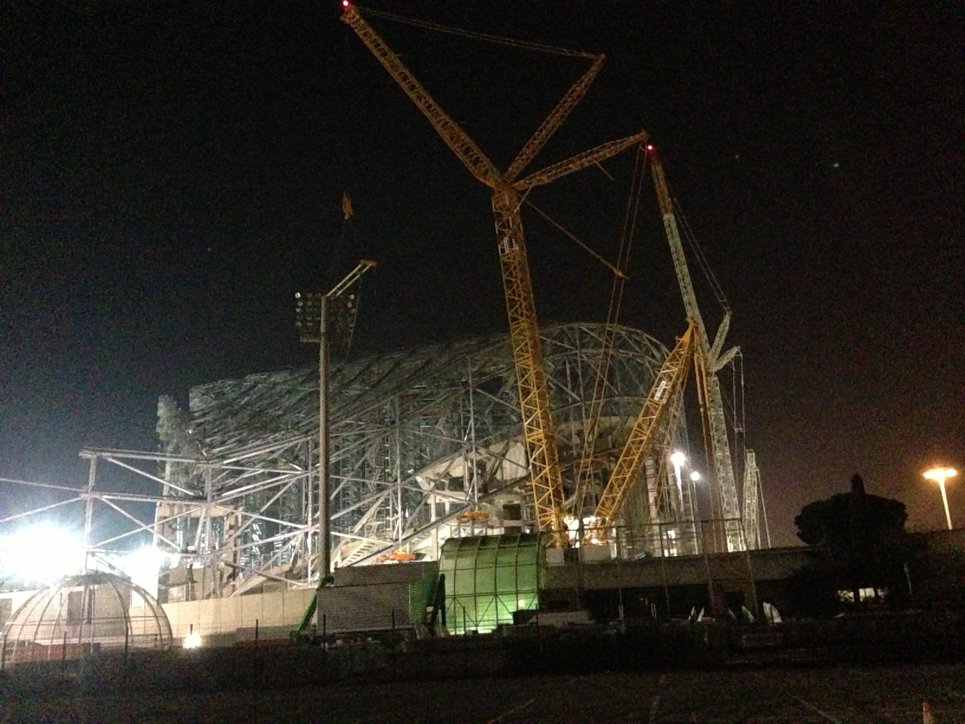 A voir si après, ils en restent là ou s'ils continuent en nocturne à poser la suite des contreventements