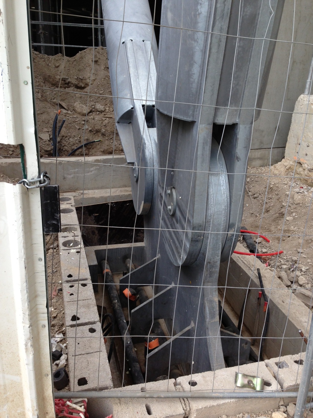 Sur une de mes photos on constate que le palonnier pour les colis simple se trouve assez loin de la zone de levage (pourquoi ? J'ai ma petite idée je vais mûrir cela) on constatera aussi le début de la démolition des petite fondation qui ont servit au montage des radiales pour les colis.