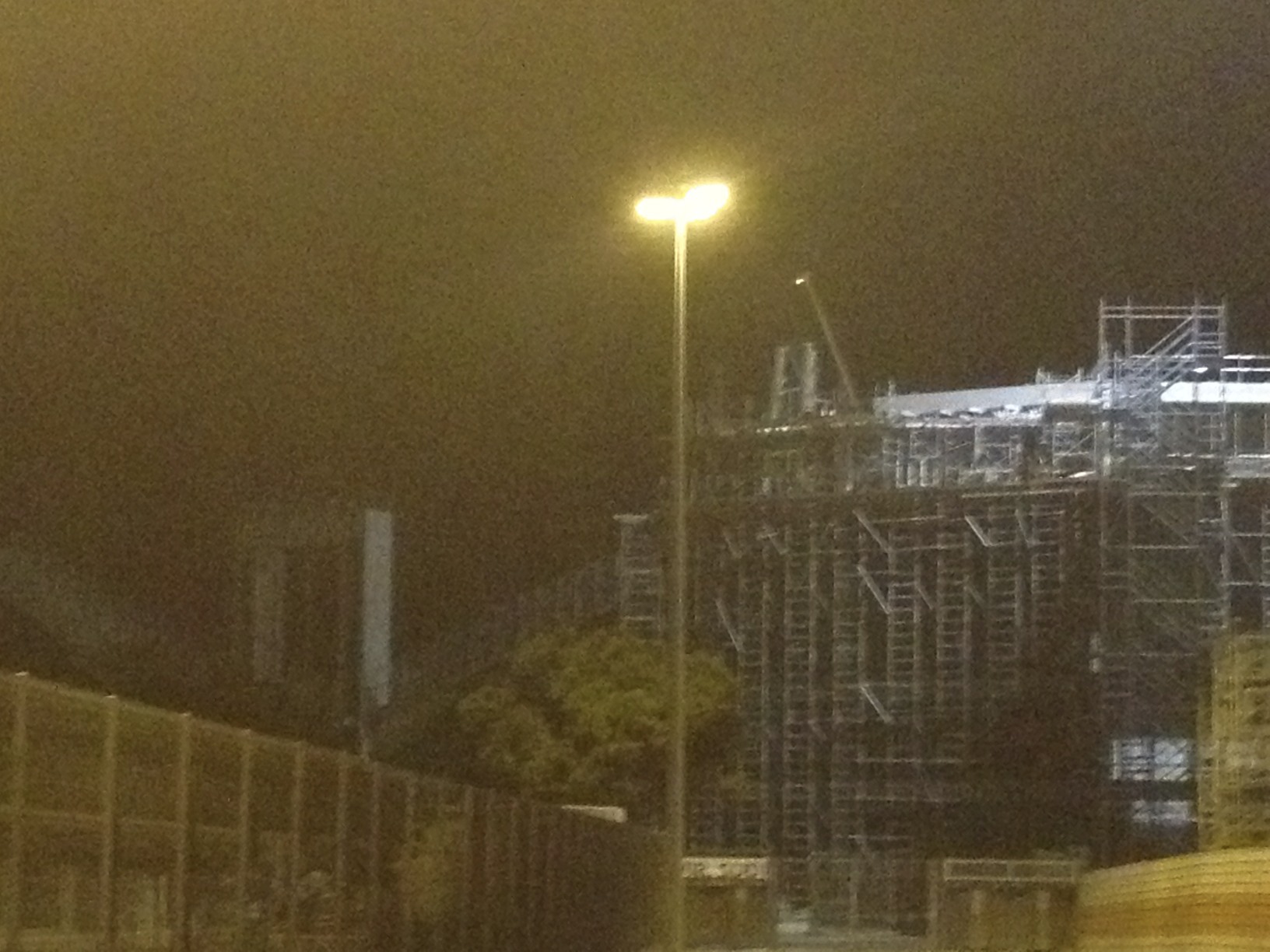 une photo ou on peut voir la taille du chantier de loin! je trouve ca super imposant! encore plus de nuit en fait!