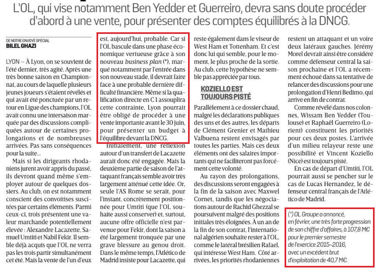 Je rappelle juste pour ceux qui penserais détenir des quelques connaissance en comptabilité et en économie d'entreprise que c'est pas parsque tu fait un EBE +40M que la DNCG va valider les compte de l'ol .