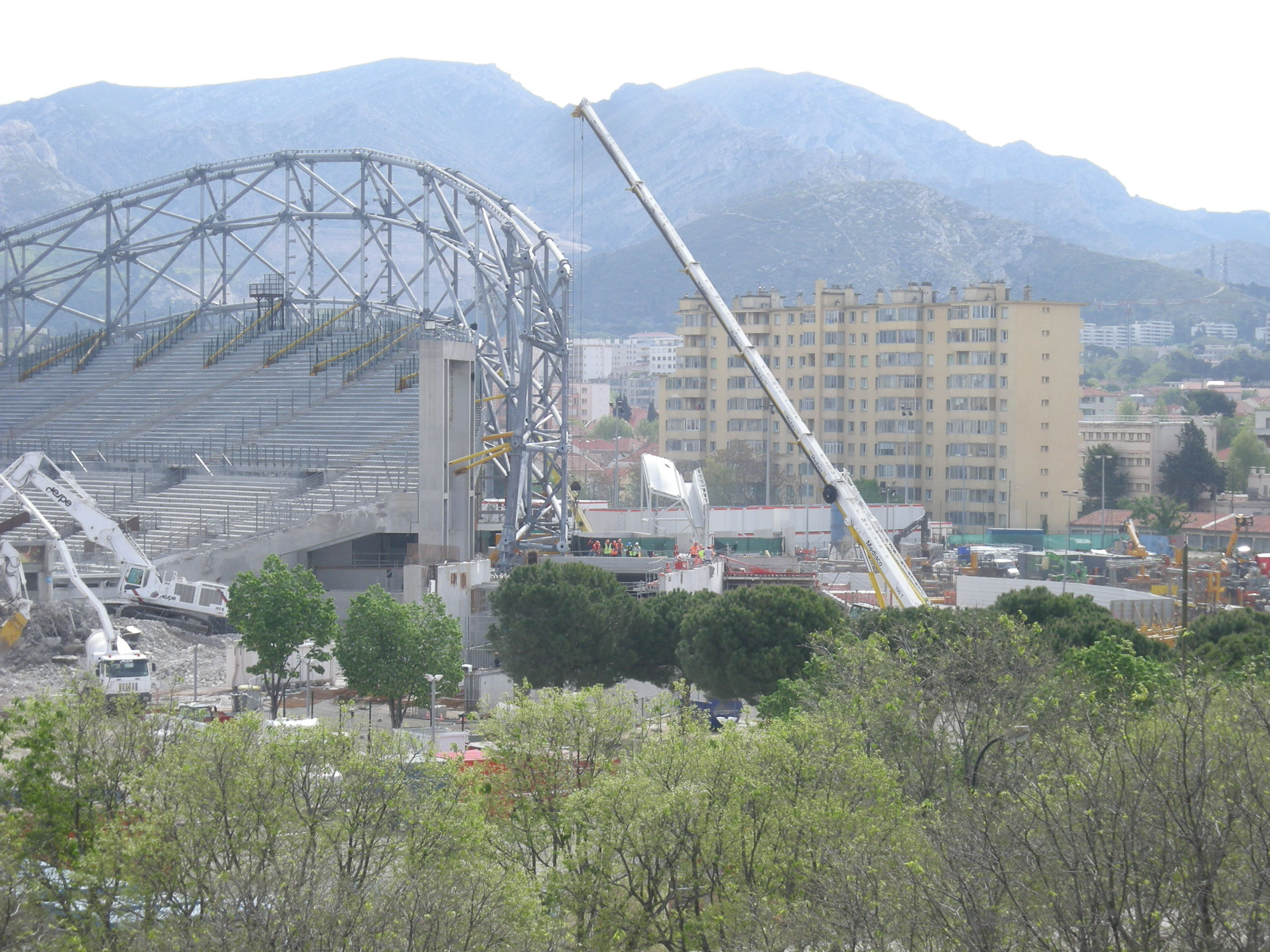 Autre chose: mais qui concerne la fin des travaux: Je me demande comment ils vont faire pour enlever les 4 palées blanches du stade...? démontage et évacuation par semis par les entrées aux 4 coins du stade? (mais j'ai un gros doute avec l'espace qu'il y a) , translation et sortie par les airs avec une grue? (mais ca voudra dire qu'il faudra un radier tout autour du stade)