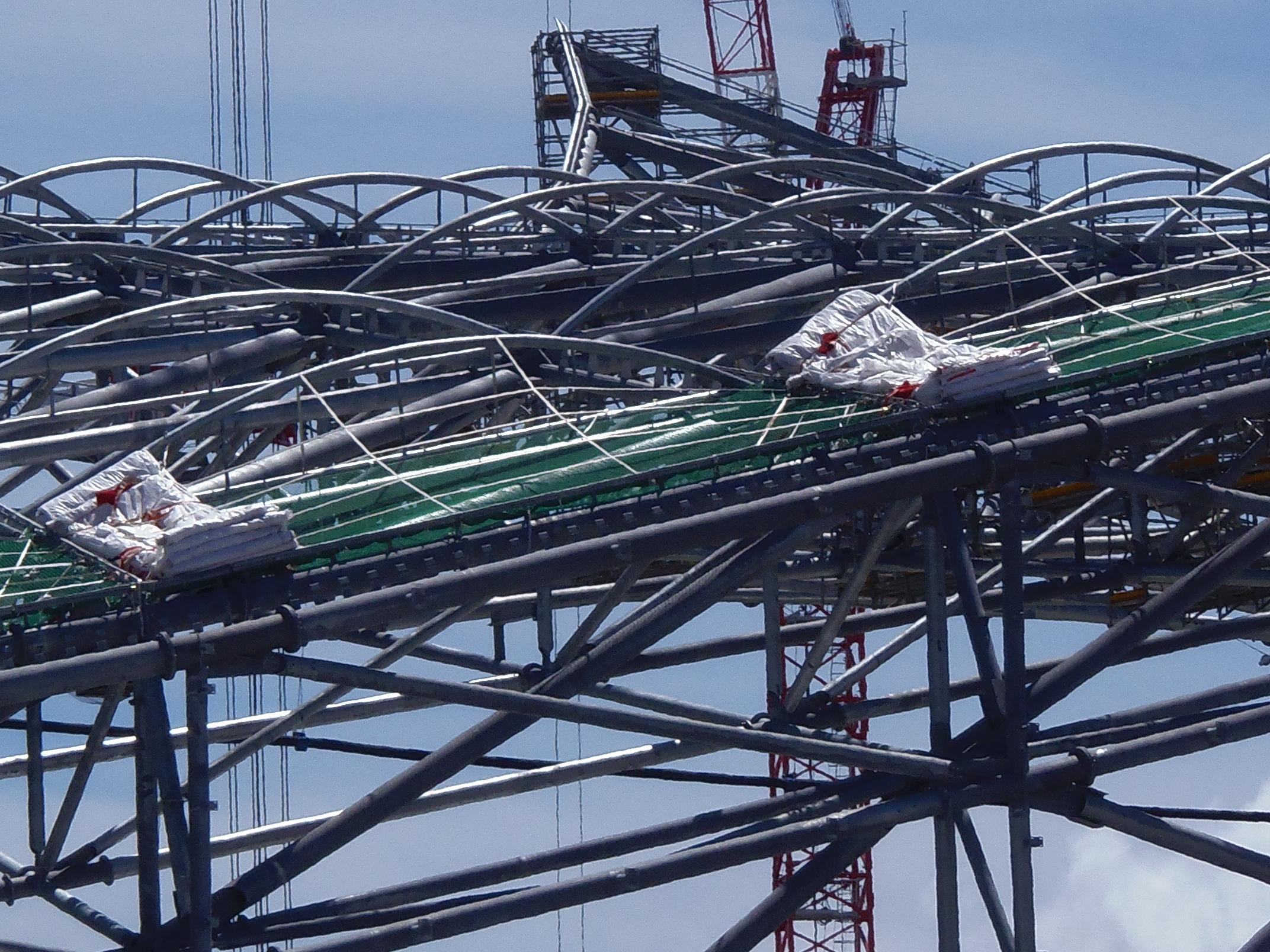 en fait on voit les ouvrier marcher sur les passerelles qui sont disposées au dessus des gouttières, il semblerait que cet espace puisse ne pas être couvert par la toile ce qui règlerait le problème de marcher debout ou pas...j'ai posé la question sur la couverture ou pas de cet espace, aujourd'hui la réponse généralement admise c'est non.pompon a écrit :pa2m a écrit :Je me quote car je me posais une question ce matin qui est passait un peu inaperçue a moins que vous n'ayez pas la réponse...