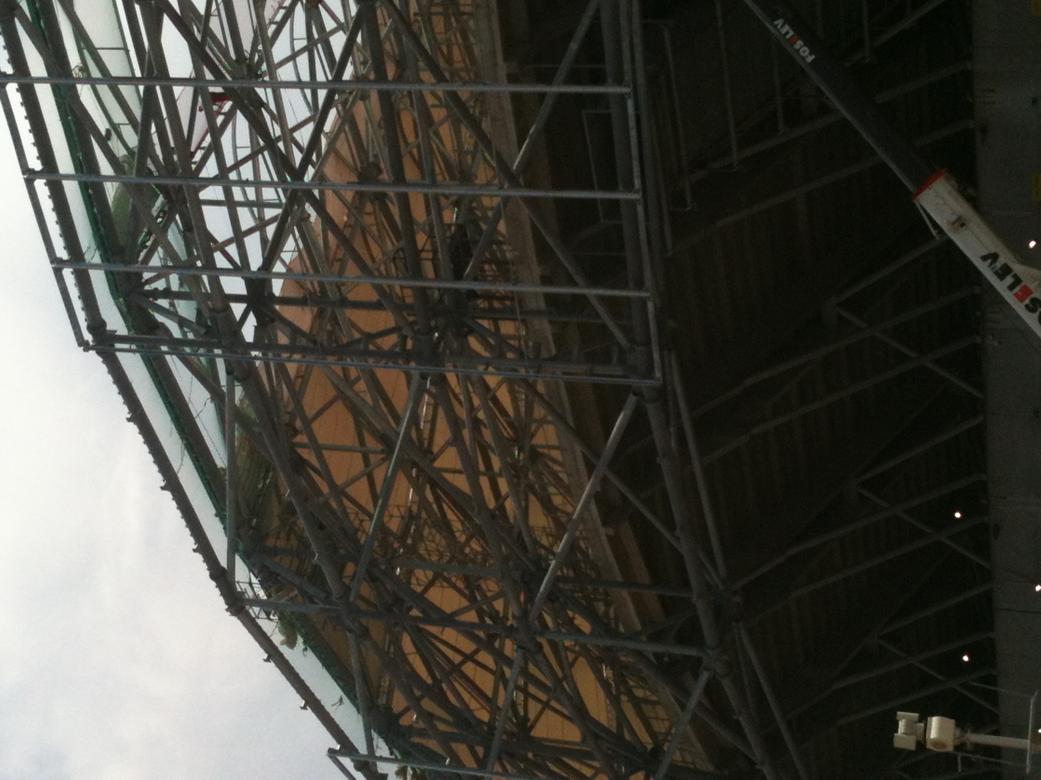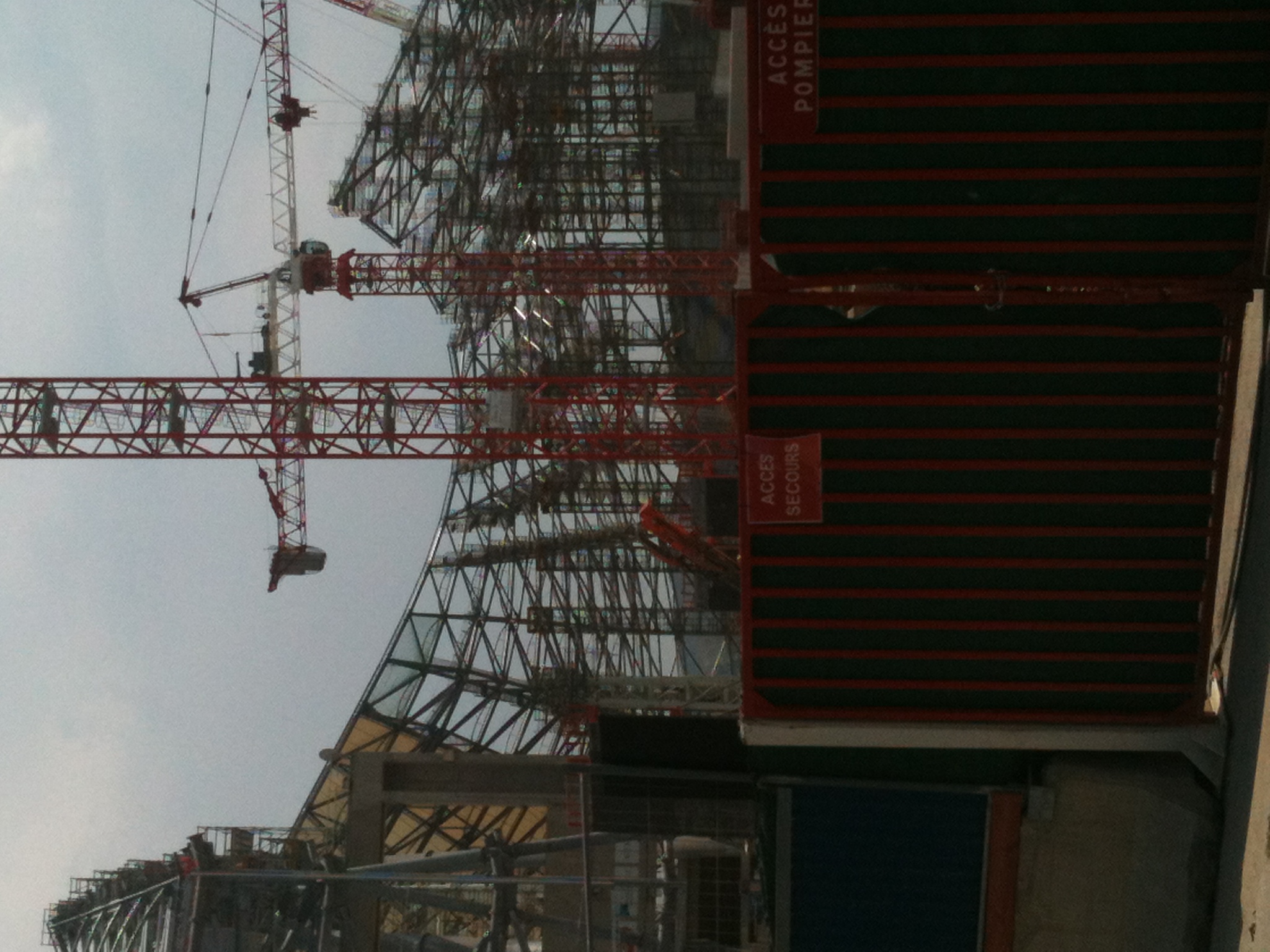 Ils commencent les planchers du niveau 2, côte 17m donc 8 m de hauteur du sol, qui sera celui du parvis extérieur et correspondra au premier niveau de loges.