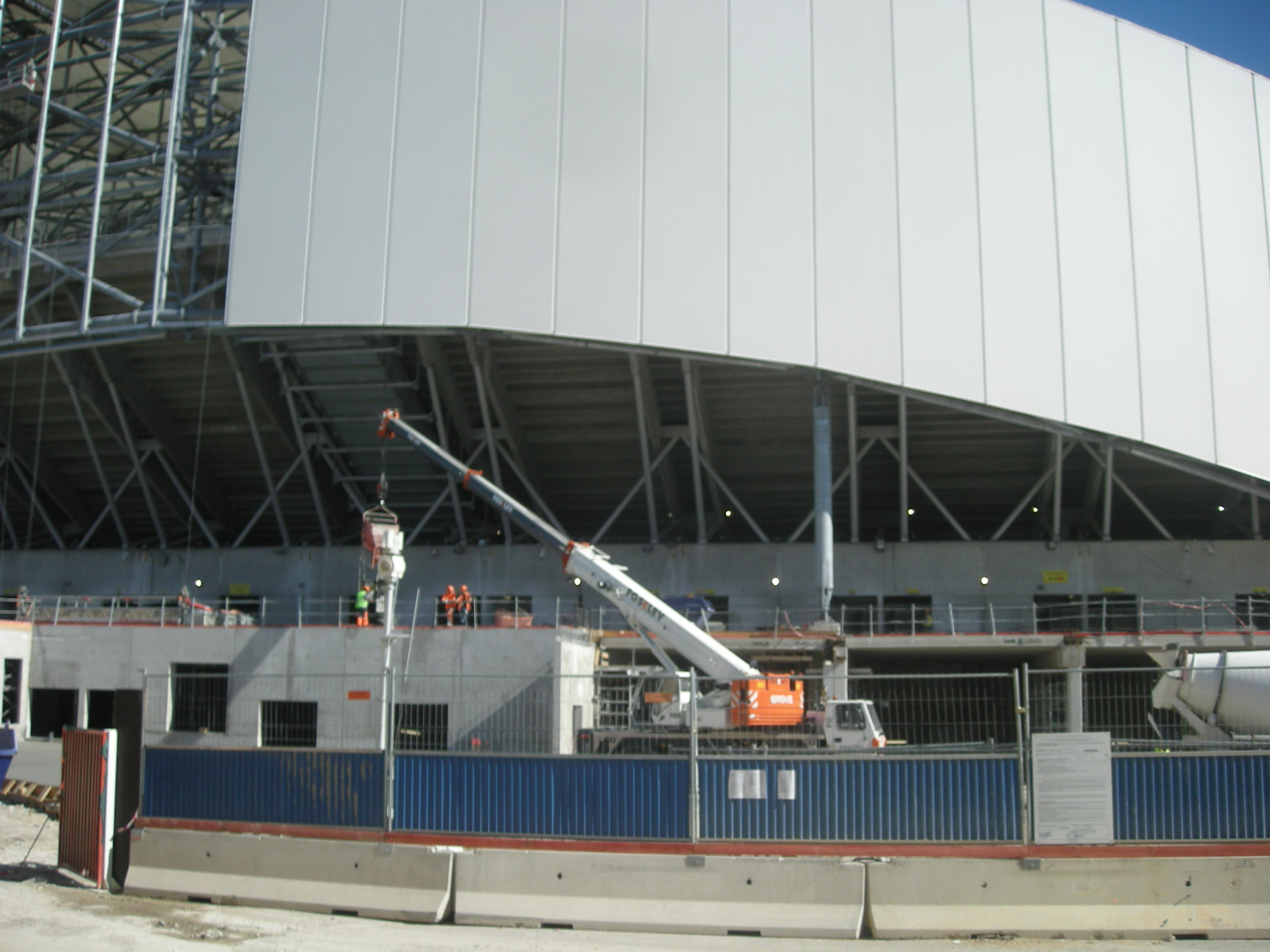 Je te confirme bien la,pose des chêneaux dans chaque tribune.