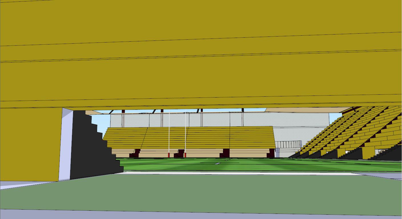 Pour le virage, je testerai ça sur le prochain stade, mais maintenant je crois voir comment je vais pouvoir faire pour avoir des siège qui épousent l'arc de cercle du virage.