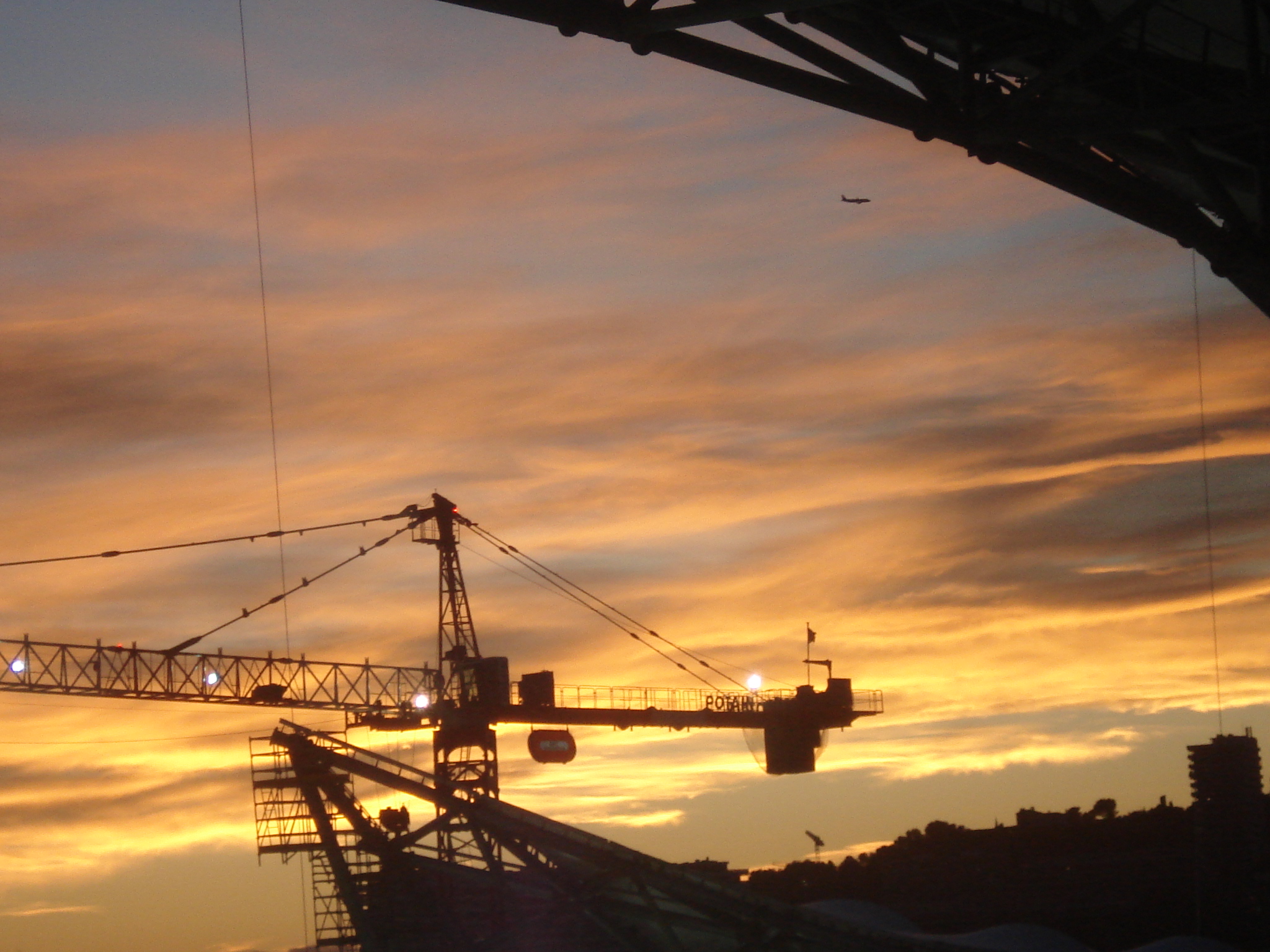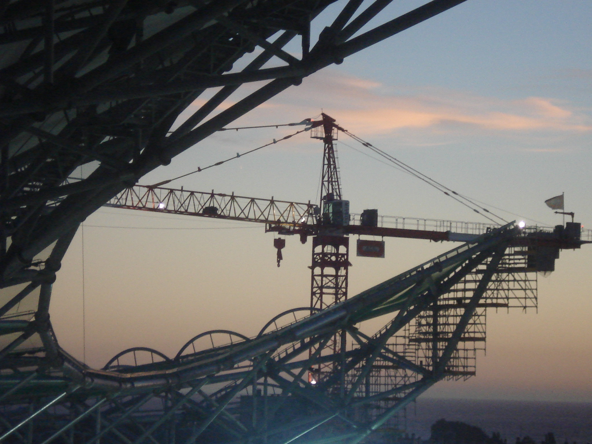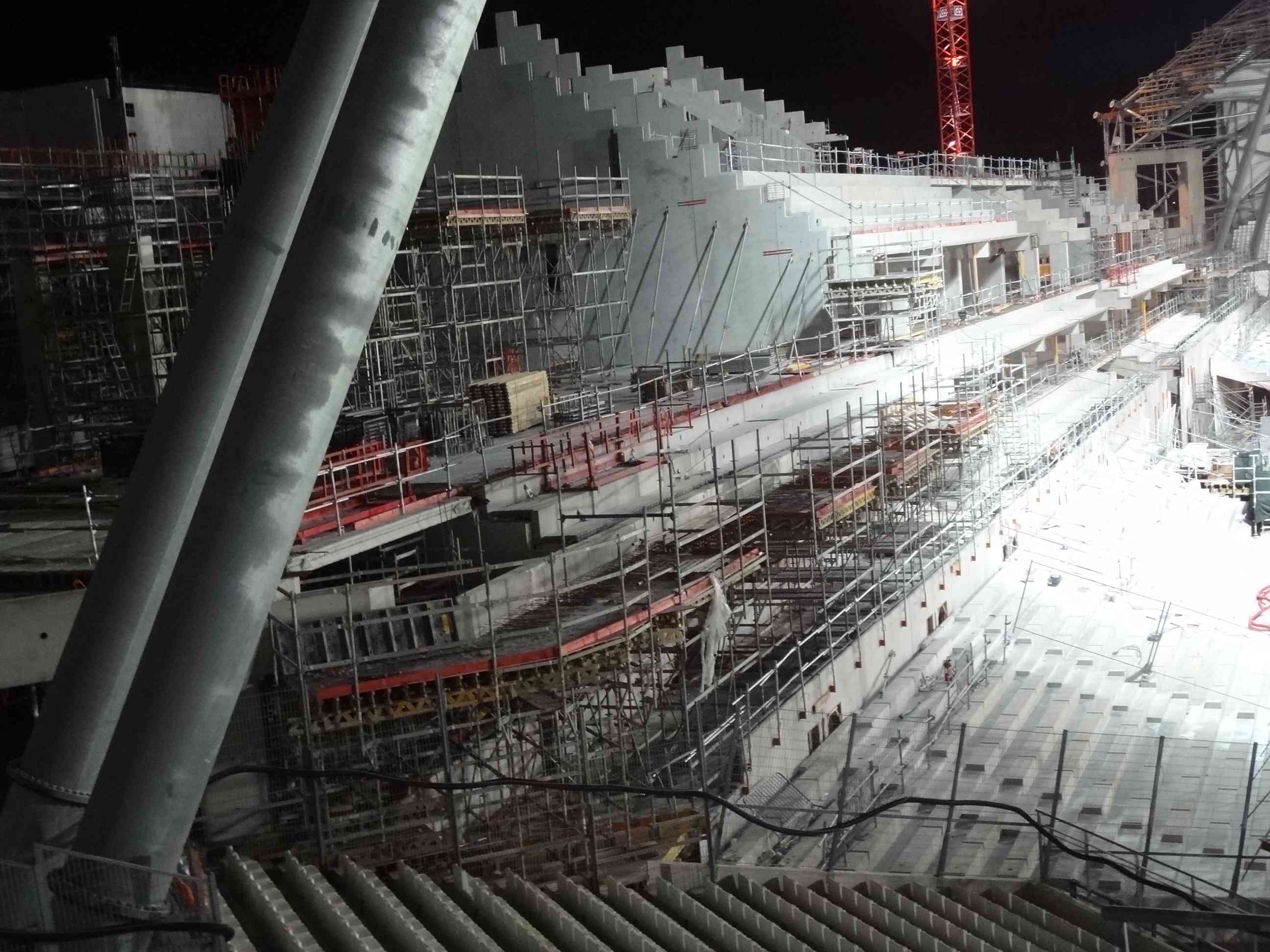 Bref ce on peu voir que deux nouveaux poteaux ont été posés par la grue G5 VN JB visiblement les angles de la tribune auront pas la même forme que la partie centrale . Car aujourd'hui nous avons 4 poteaux dont deux cote à cote