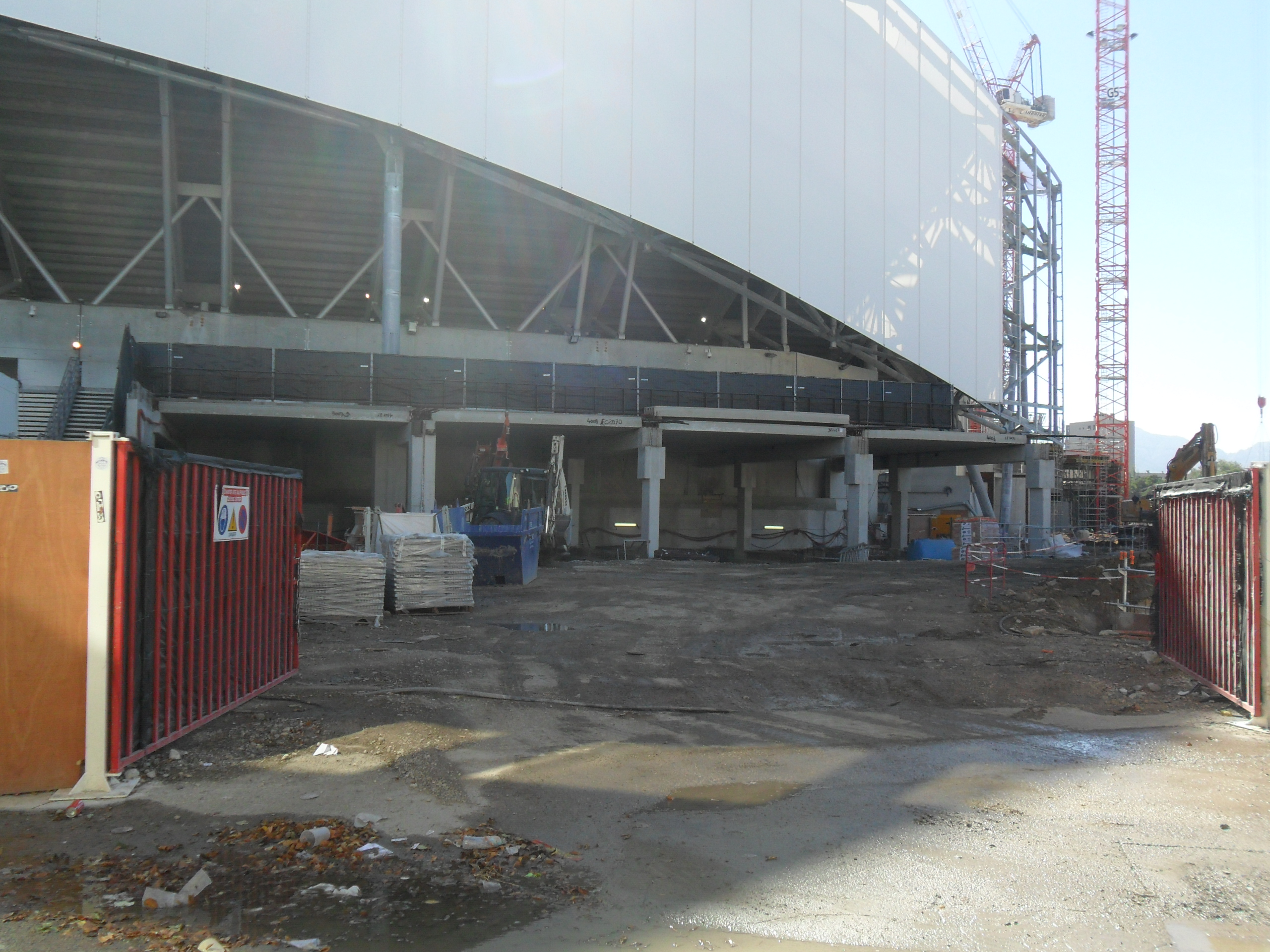 Le trait Orange, c'est peu ou prou, le niveau de la VSI et par exemple des garages de bus régie vers le milieu du stade.
