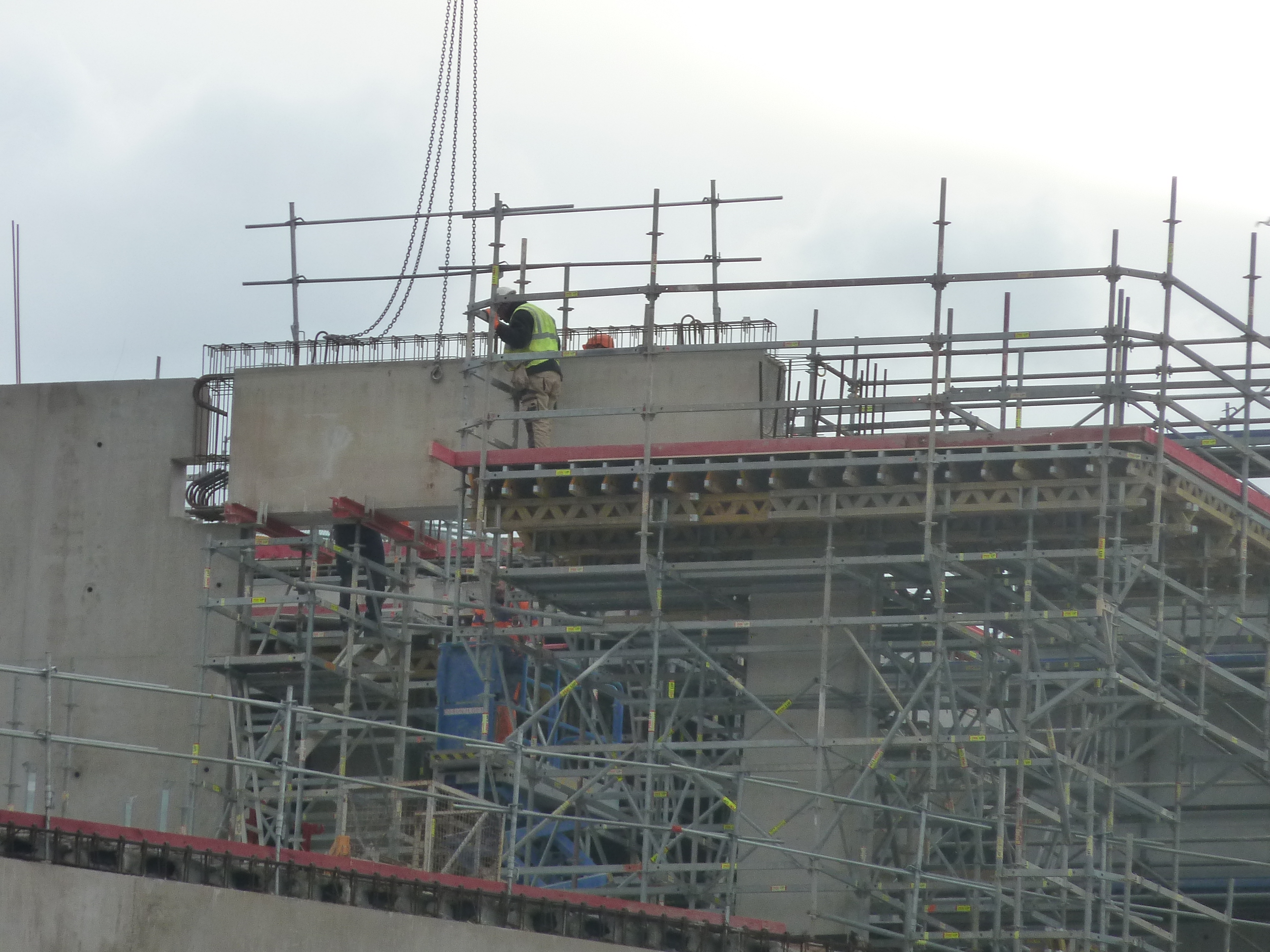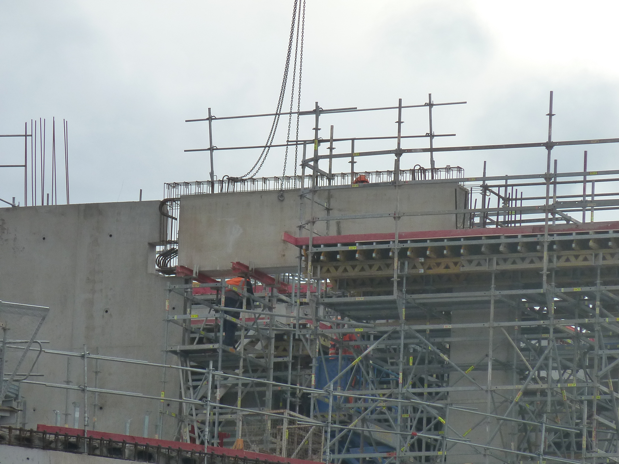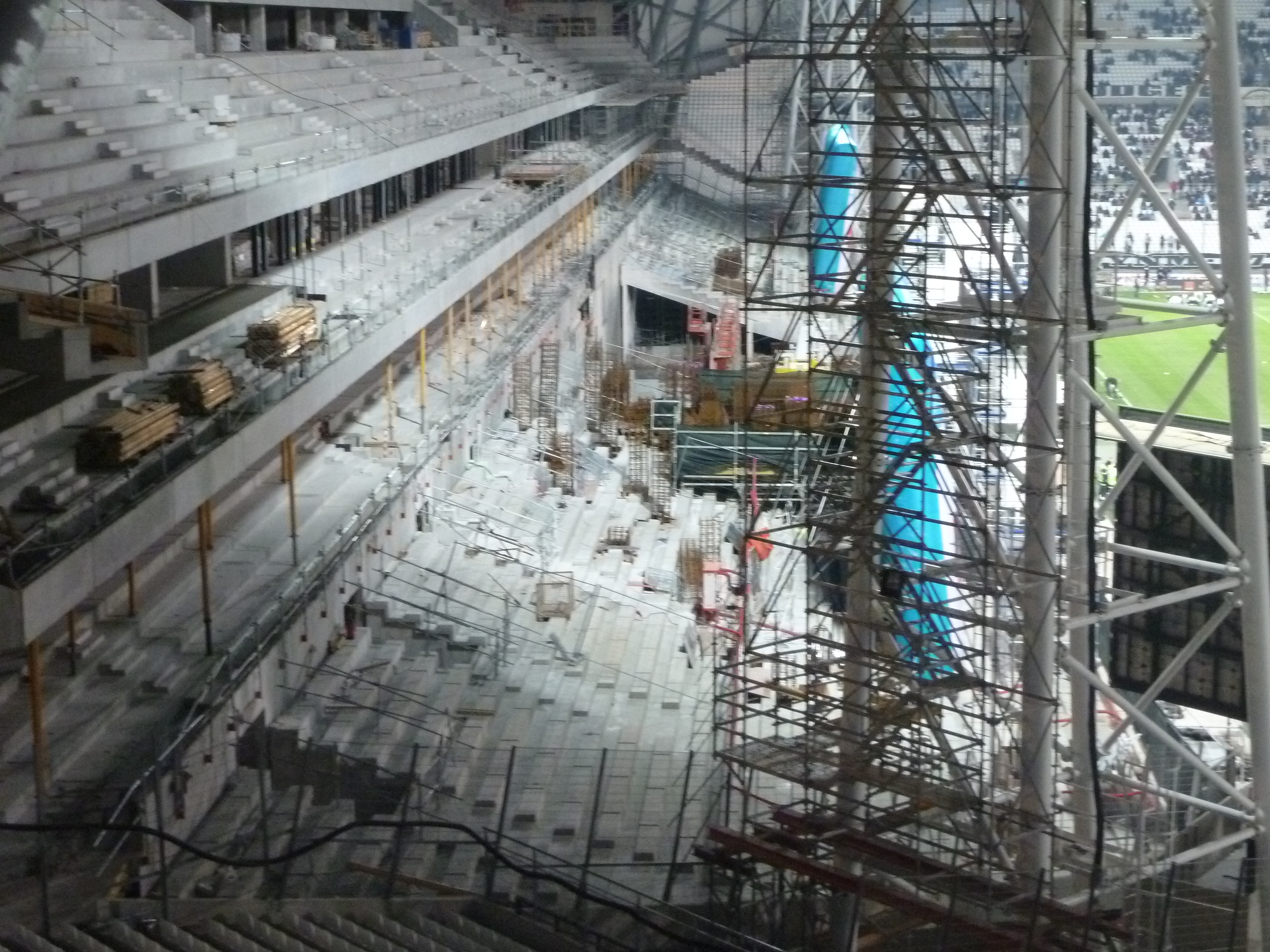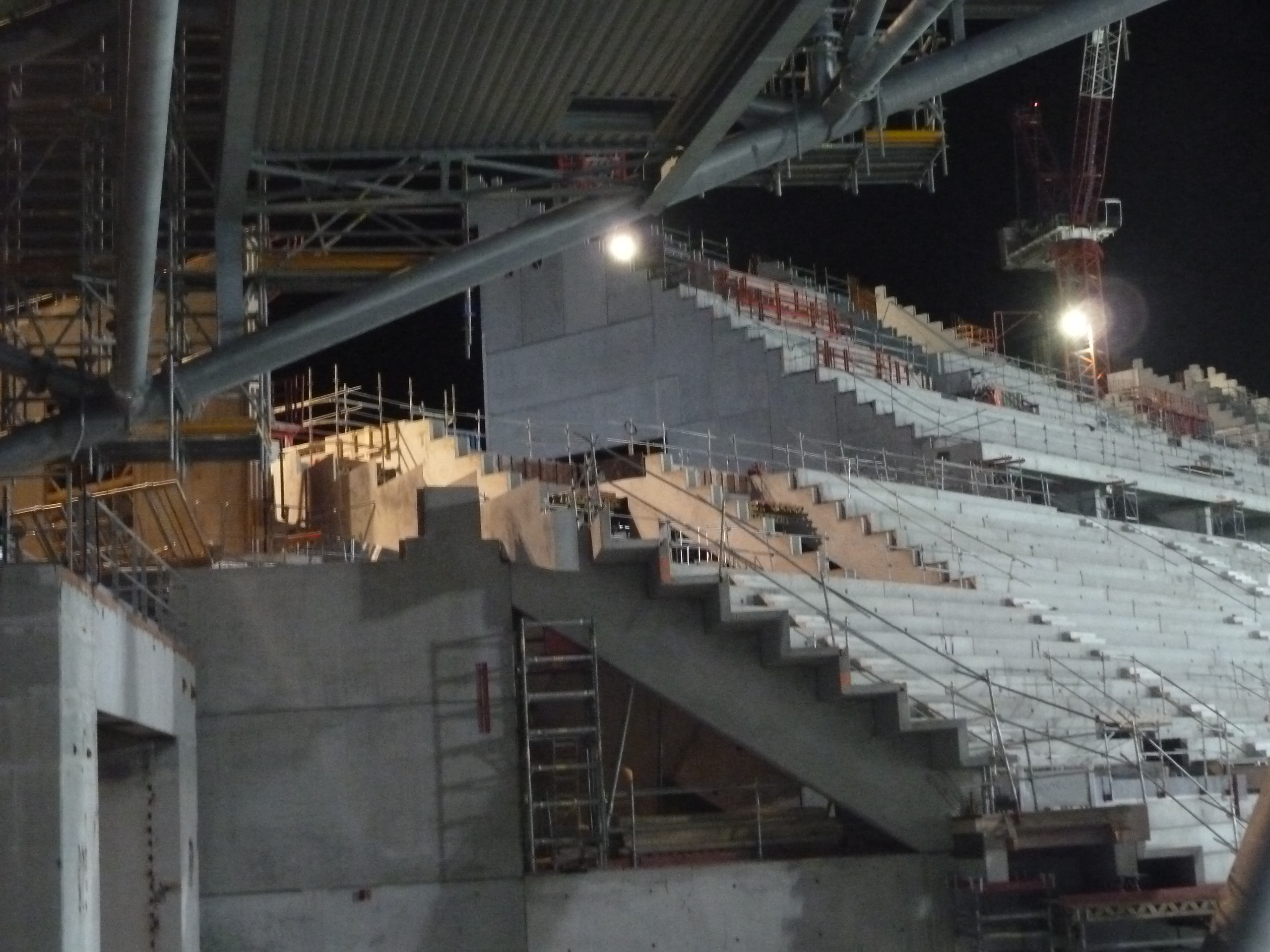 Je mets en ligne les photos du stade prises hier soir et ce matin. Cela bossait dur ce matin avec presque toutes les grues en action.