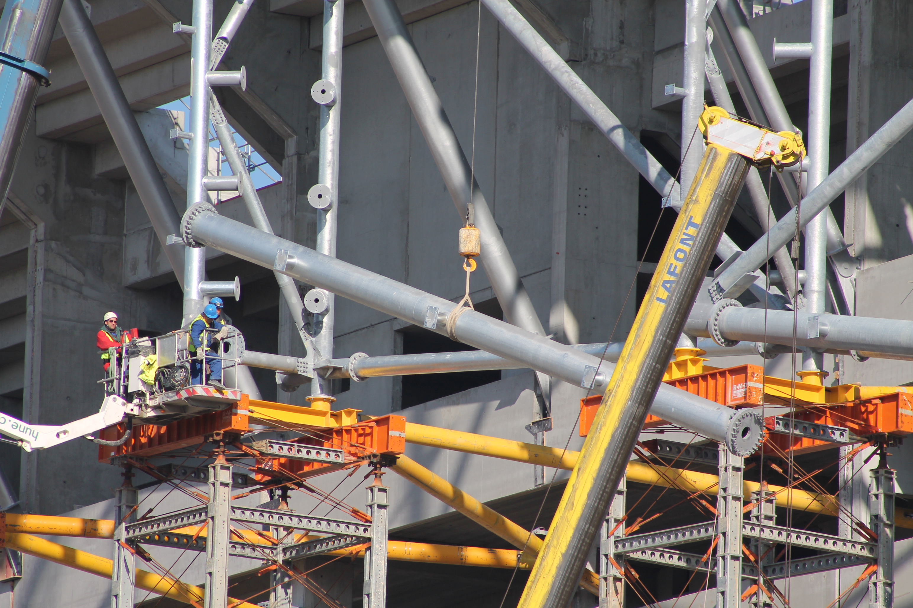 Stelea j'ai repris ta photo car j'ai une question. on peut voir un bon nombre de brides sur les deux radiales qu'ils sont entrain de monter et qui ne sont pas sur les autres radiales. Est ce que quelqu'un sait a quoi vont servir ces brides??