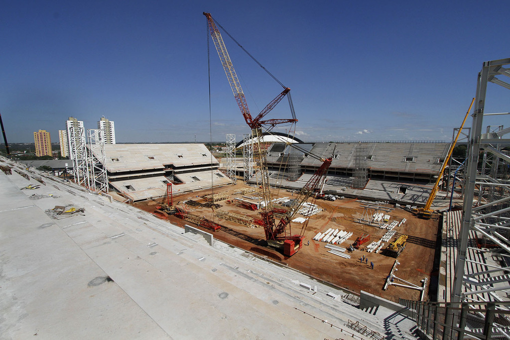 On a aussi le stade du Palmeiras à São Paulo, en cours de construction, qui est assez curieux et original puisque sur un côté en arrière des buts les gradins suivent une forme ovale et de l'autre cotê les gradins suivent de plus près les lignes de touche, comme les exemples que je viens de citer..