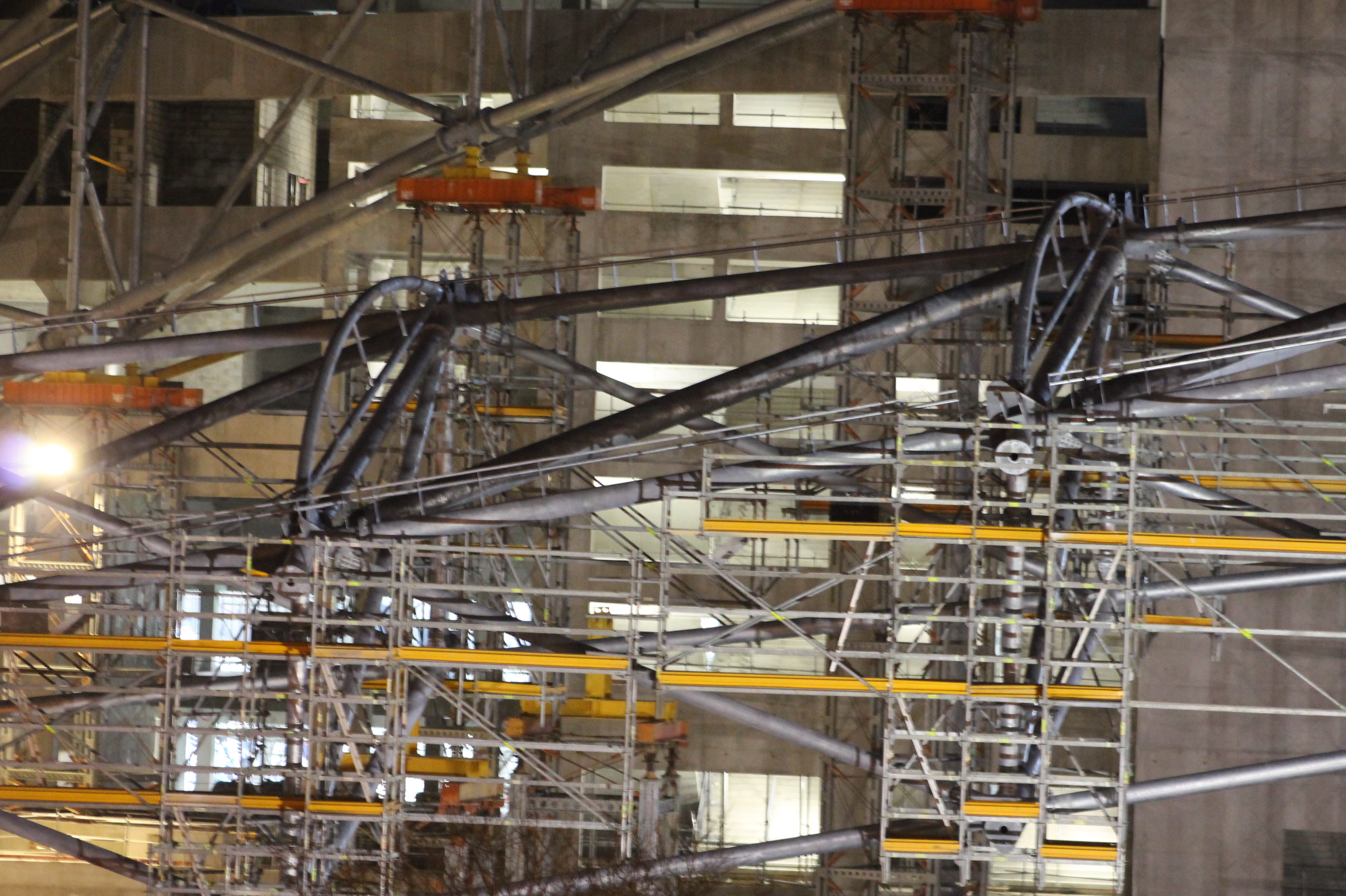 Vue sur le colis simple et radiales en cours de montage Pose d'une radiale sur le colis double (vers 19h30) Désolé JJ, je n'avais pas de point de vue vers un chaineau et ses gardes corps repliés.