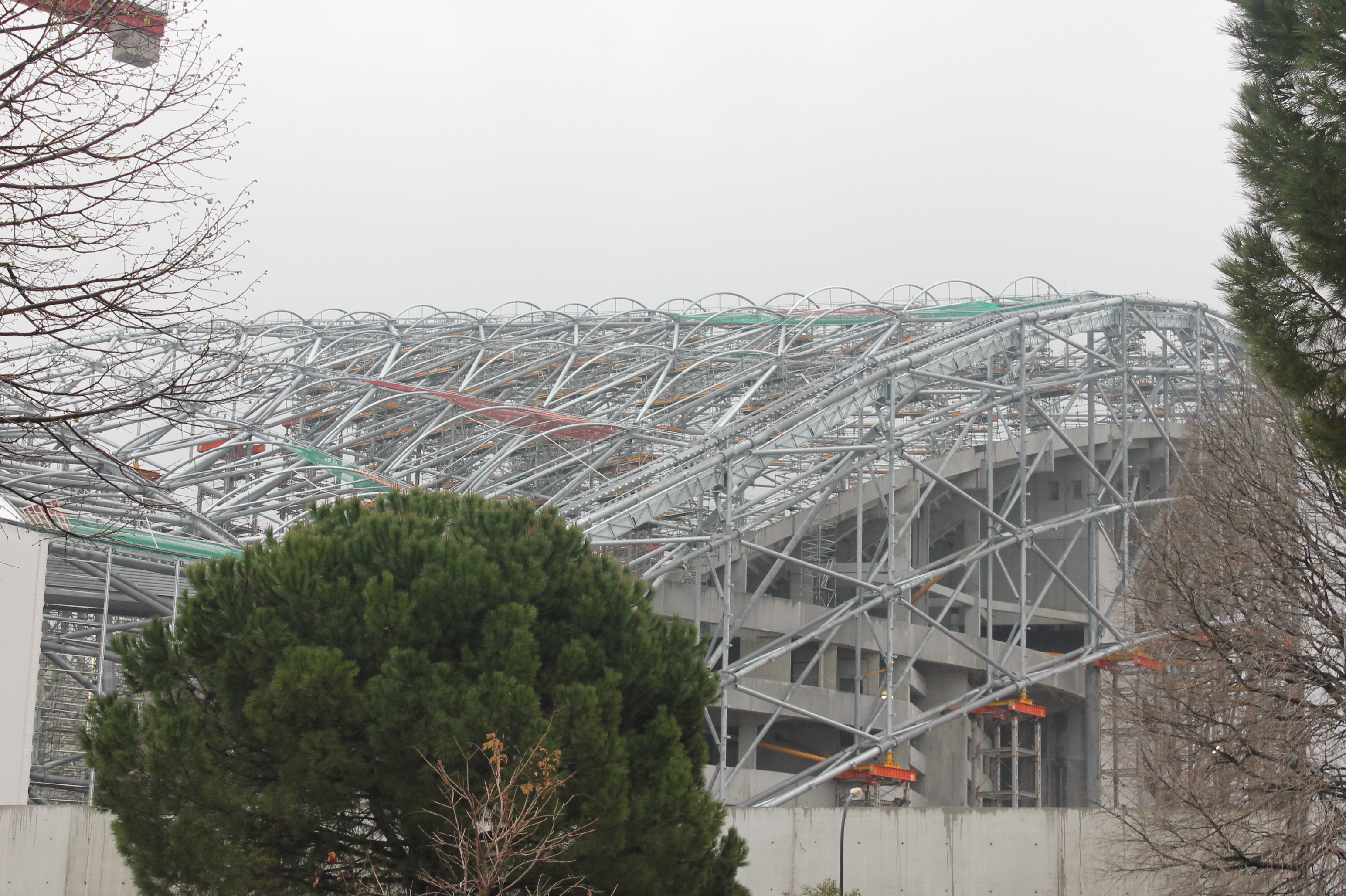 je ne vais pas parler du match ,je suis parti 1/4 d'heure avant la fin,mais j'ai remarqué en arrivant que la toile du toit est arrivee et est stockee a cote de la boutique de l'om dans des caisses en bois venant d'allemagne.