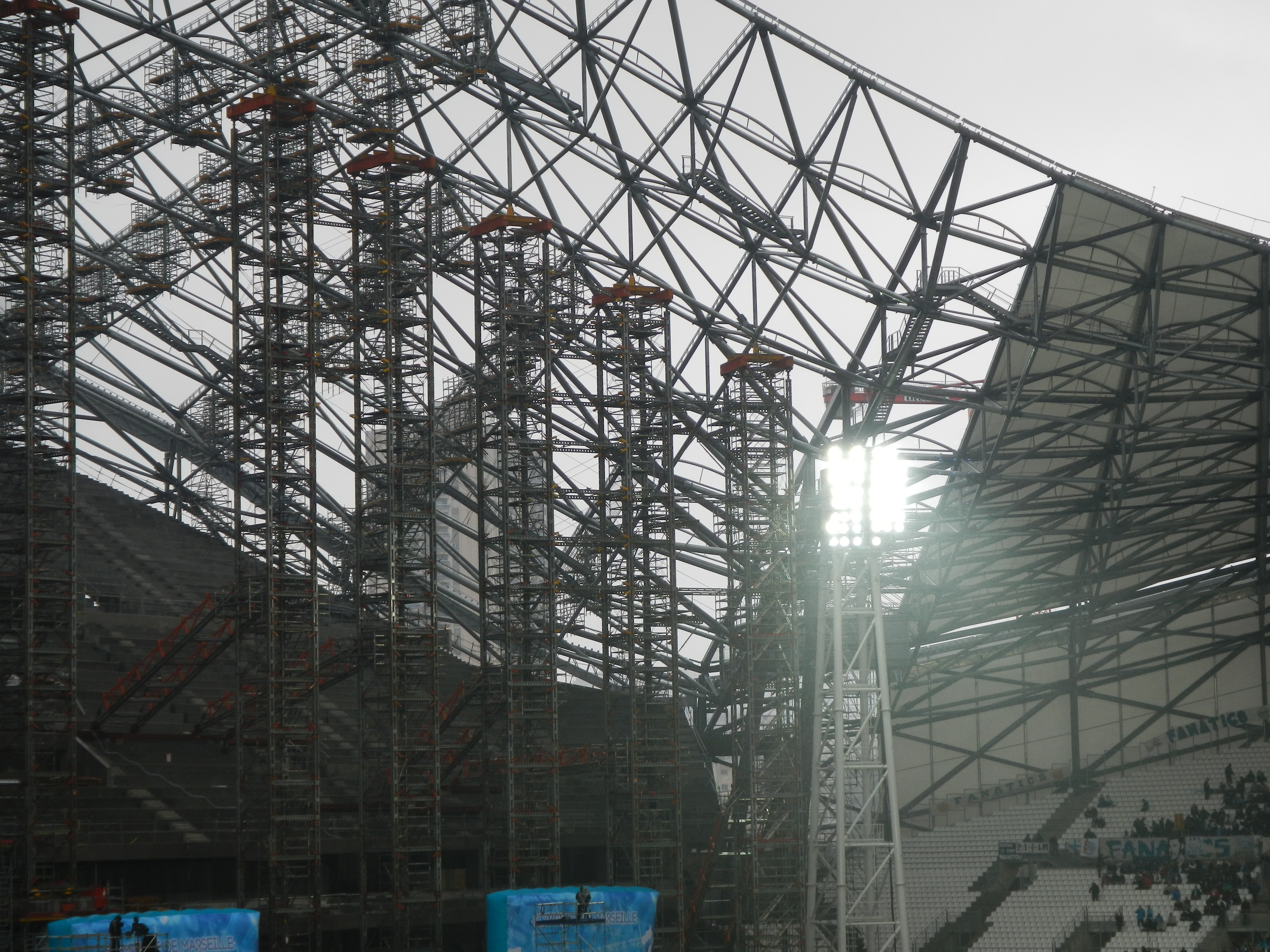 Je te fais un zoom à la même échelle sur le haut de la palée et en bas, il y a 2 cameraman pour donner une échelle approximative (même si les cameraman en bas semblent être plus près de l'appareil photo que le haut de la palée...)