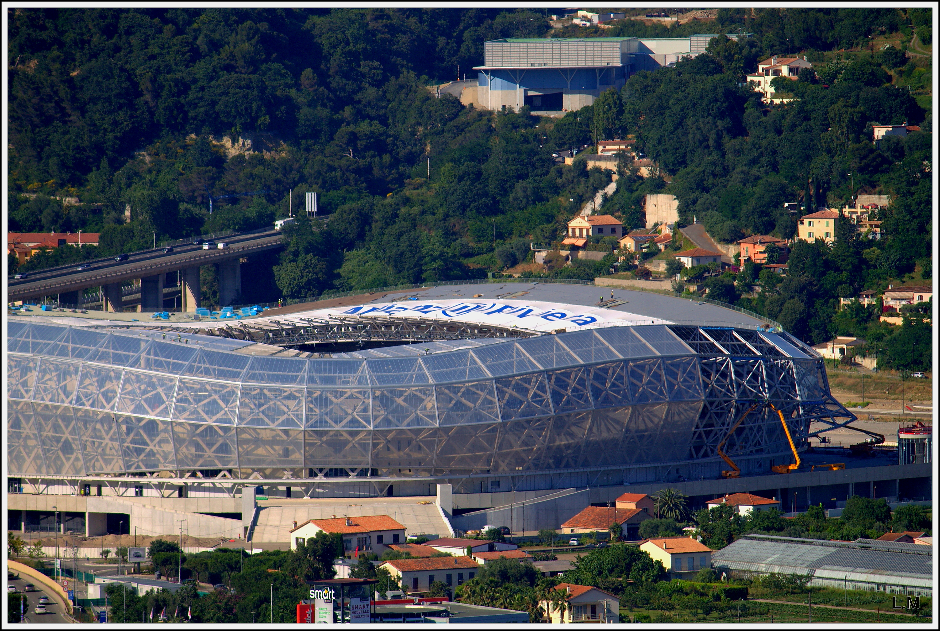 Pour info, ils sont en en train de poser le " Allianz Riviera " sur la charpente