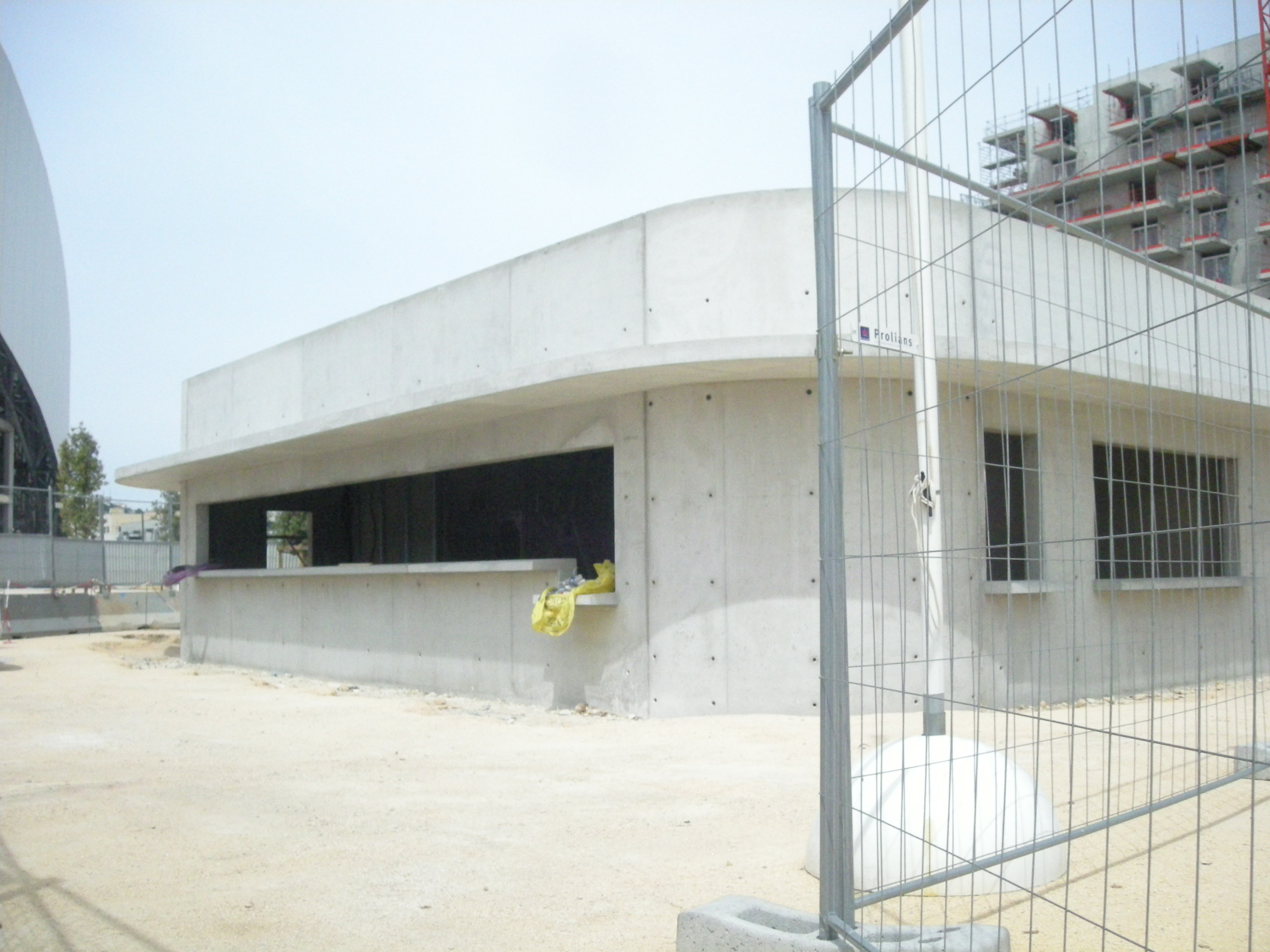 le batiment sur le parvis Ganay dont on ne connait pas l'utilité (buvette, consigne ?)