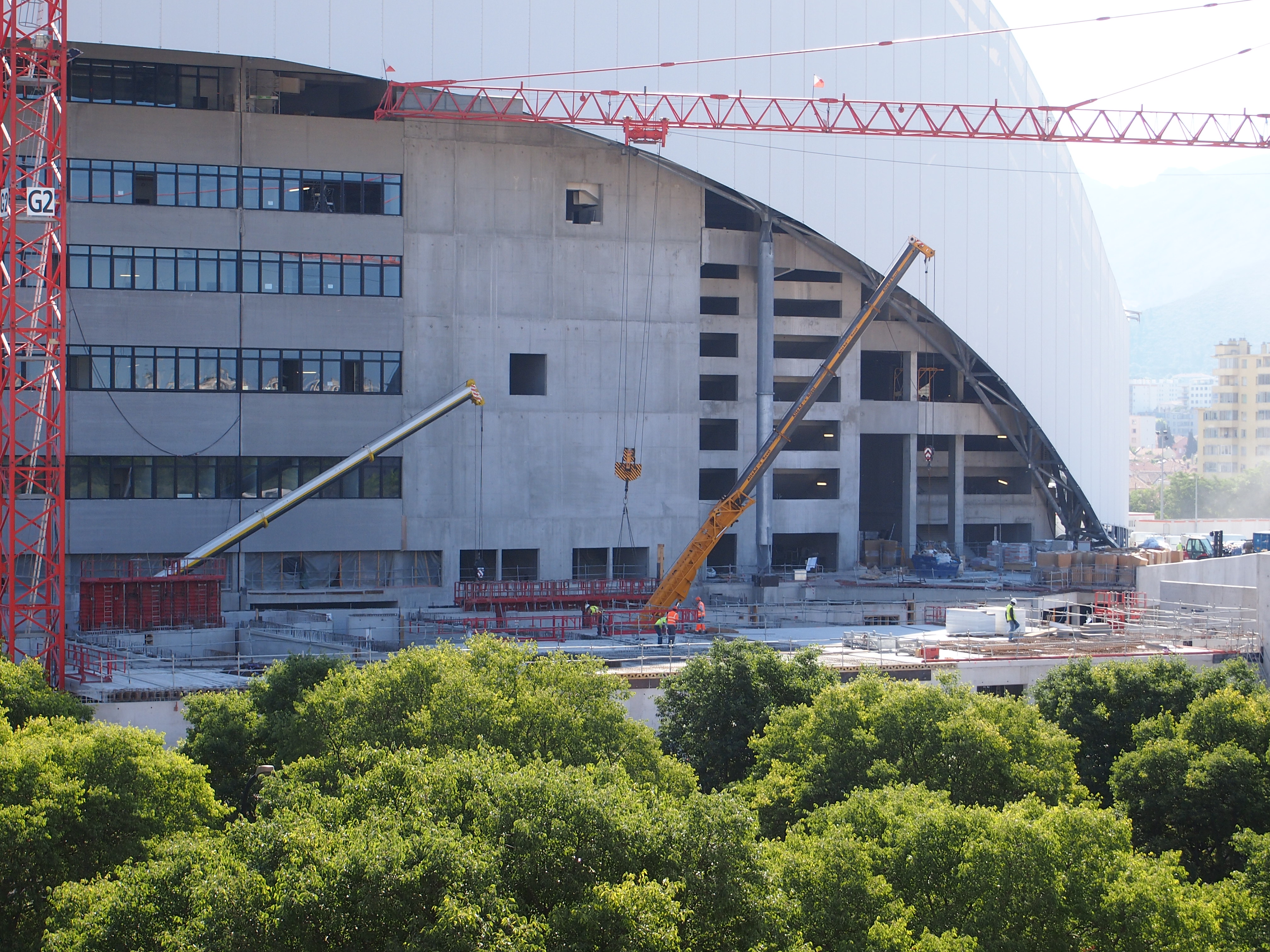(qui ne nous permet pas cependant d'apprécier les avancées sur le parvis, juste de voir qu'ils n'ont pas encore déployé l'ultime lé sur le V?)