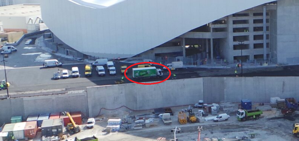 entouré en rouge cet ouvrier prend des mesures depuis tout à l'heure sur les allèges, il va donc y avoir quelque chose sur cette partie