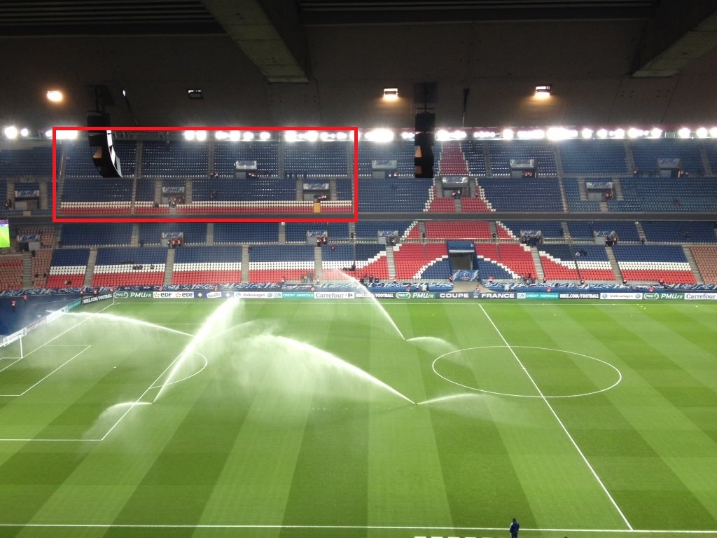 Seul petit bémol, je l'aurai pas mise en bas de la tribune haute, mais au milieu, une partie sur chacun des blocs