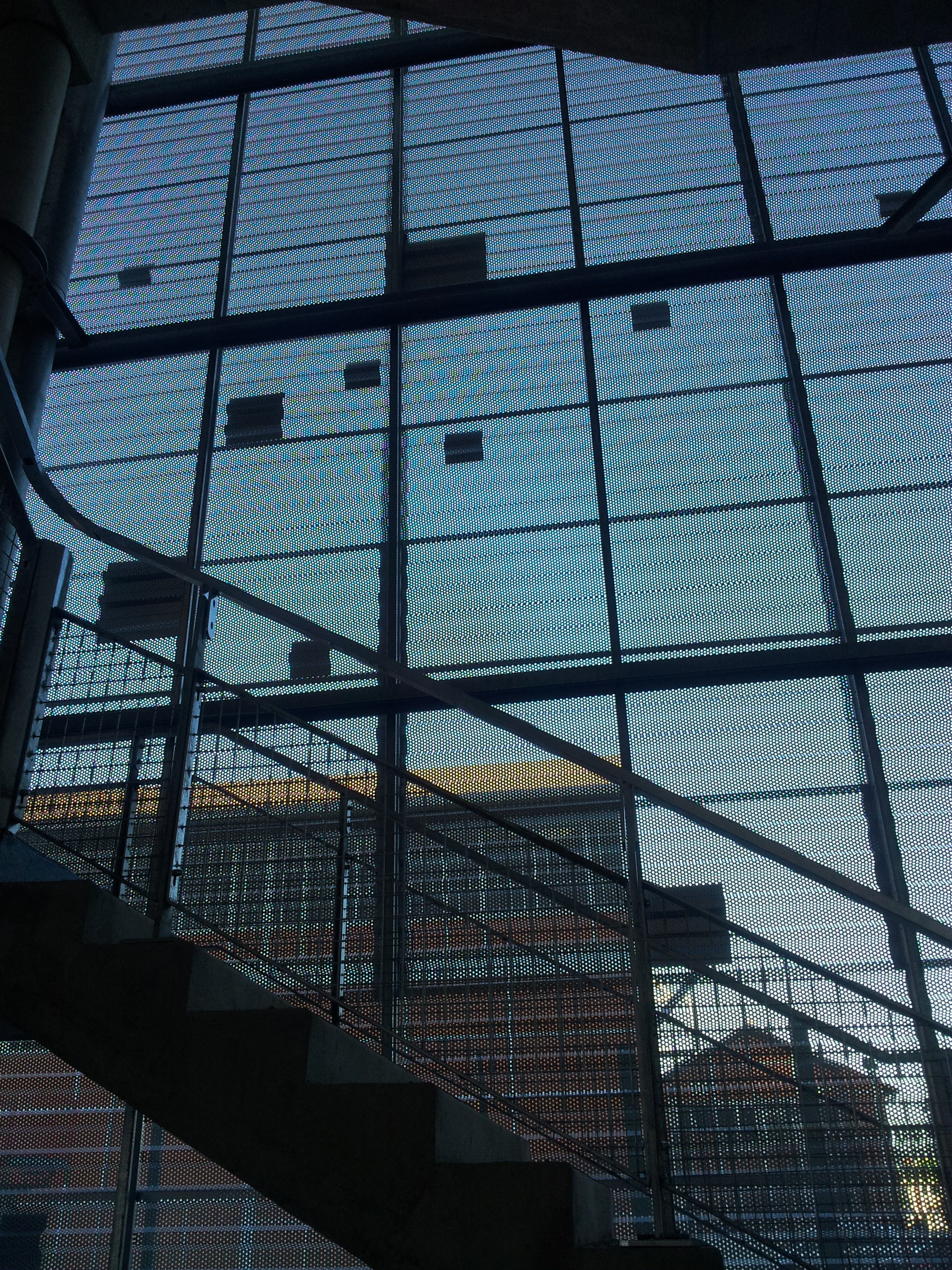 . Cet effet donne beaucoup de cachet à la tribune et fait oublié le coté "pentu" de la toiture (effet recherché par les architectes je pense).