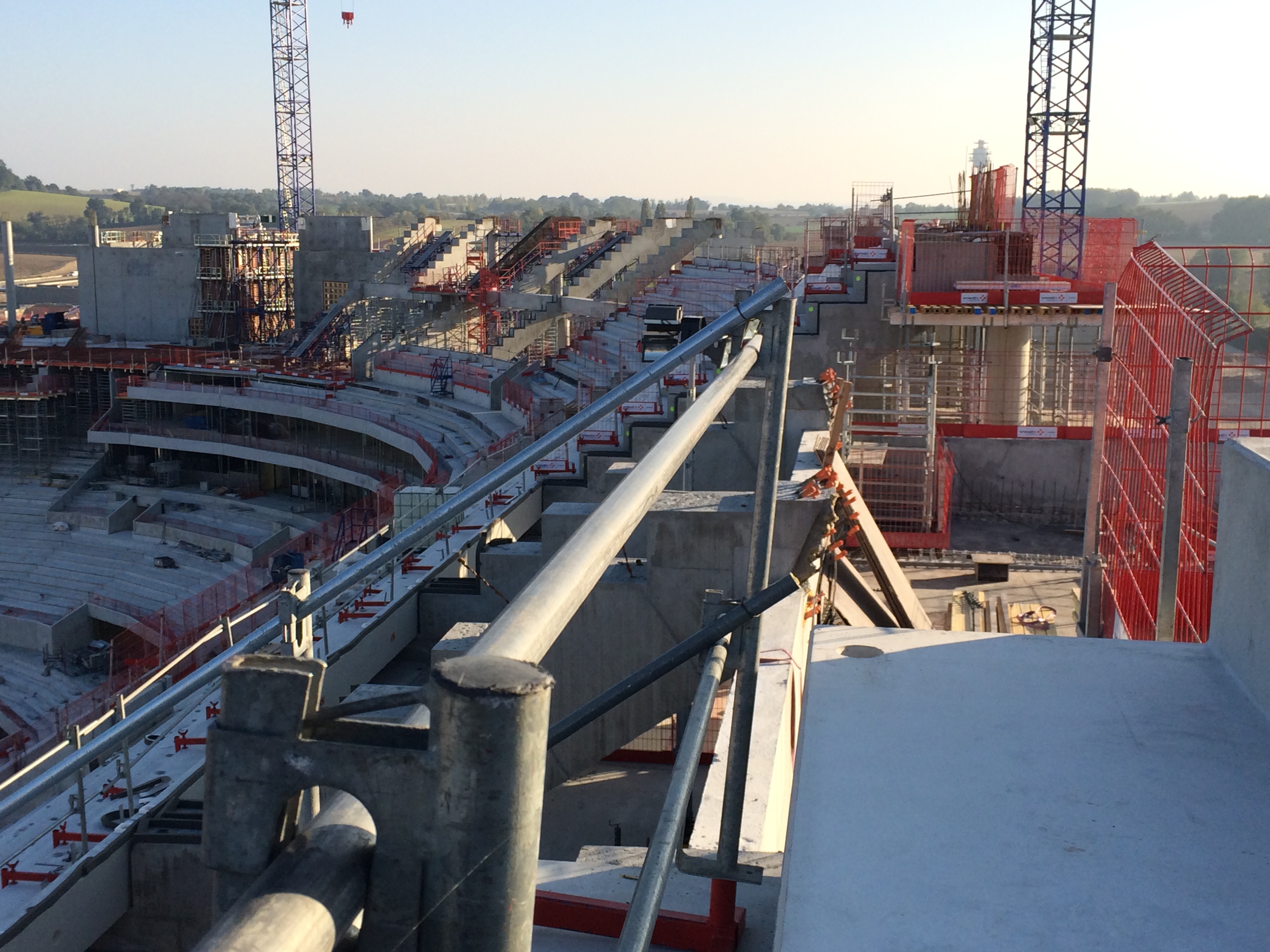 Quant à toi la Grenouille, un grand merci pour ces photos de l'intérieur du site. Où l'on voit que plusieurs éléments de charpente ont déjà été assemblé. C'est la première fois que l'on entrevoit l'immensité de cette charpente métallique en rapport avec l'édifice de béton. Les porte à faux vont être gigantesques, de l’ordre de 45 mètres !!!!!!
