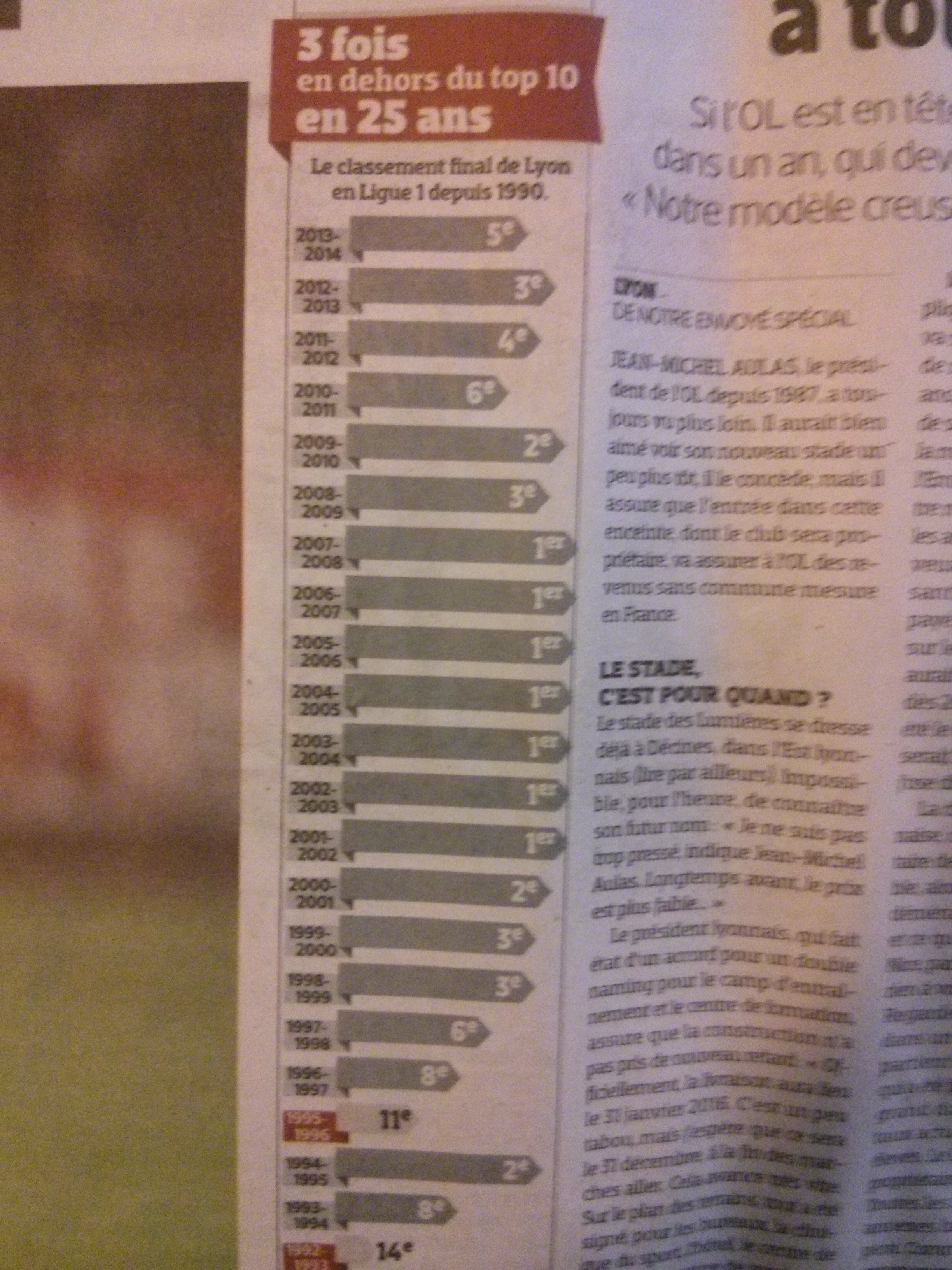 En 2010/2011 l'OL ne finit pas 6° mais 3°.bilbaw a écrit :Jaloux? De qui de quoi bonté!!