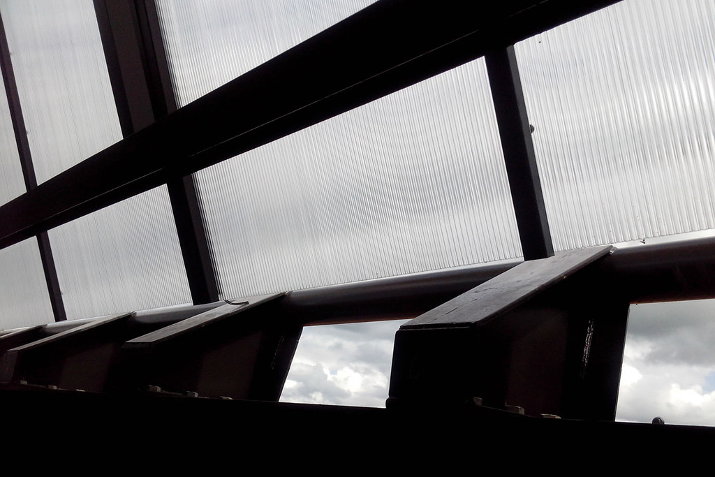 Il vont bientôt mettre en place la toiture du kop nord et du kop sud... euh, des tribunes derrière les buts.
