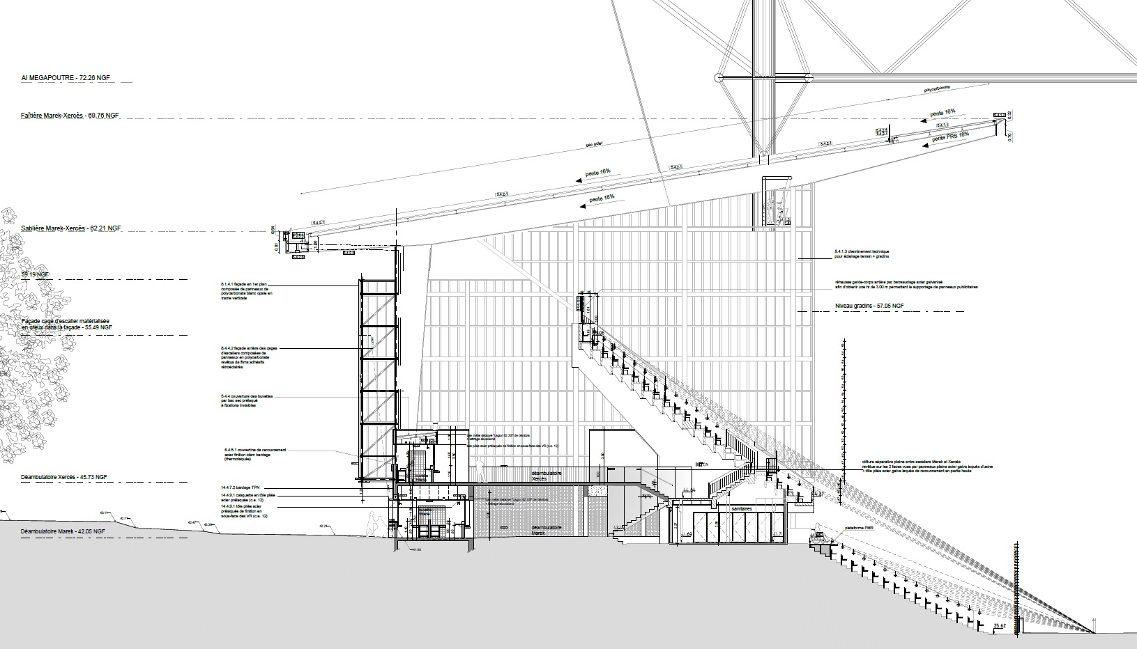 Benoit, tu veux dire que l'éventuel agrandissement de la Xercès (post 2016) se ferait sans démontage de la future nouvelle toiture?benoit62 a écrit :D'après cette même personne, l'ajout de rangées serait de 4000 place en plus, sans surélévation de l'actuel toiture, car de base le projet était comme ci dessous : ( plan de Masse de l'extension du projet a 90M€ HT ) :