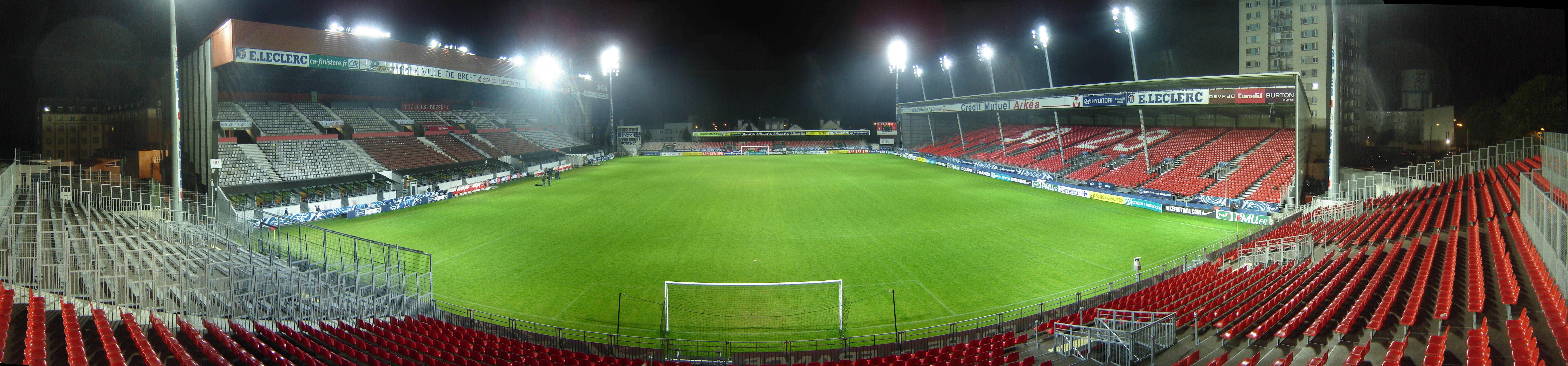 Francis-Le Blé a paré son habit de lumière pour accueillir Auxerre samedi et célébrer le retour de la Ligue 1 à Brest, 19 ans après. Dès le 8 mai, au lendemain du dernier match de Ligue 2 à domicile, les travaux ont commencé pour rajeunir le « vieux » Le Blé. Les tribunes Strasbourg et Pen-Huel ont disparu, remplacées par la nouvelle tubulaire Crédit Mutuel Arkéa d'une capacité de 6 500 places.