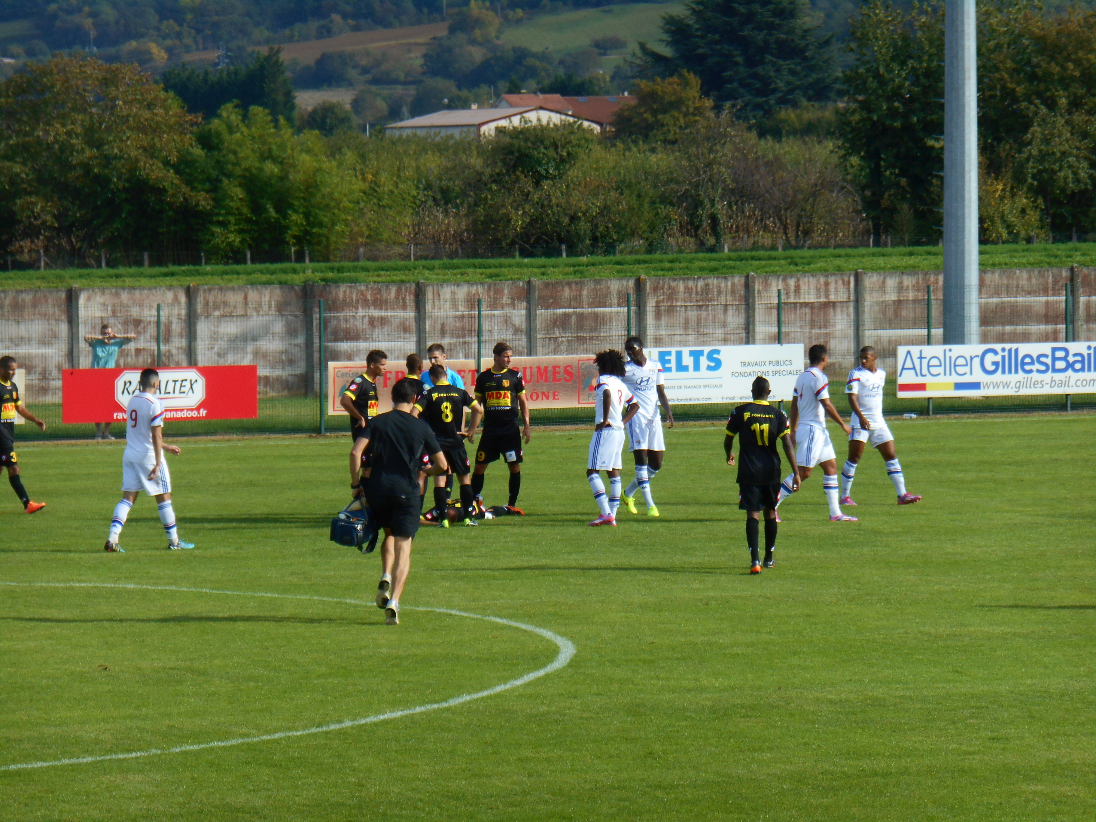 Depuis le temps que je vie sur Lyon et que j'avais entendu parler de Ludovic Giuly jouant dans ce petit club, j'avais recherché quel match pouvait me faire me déplacer en campagne Lyonnaise, dans les monts d'or. Situé à 23 kilomètres de mon lieu d'habitation, il fallait que le match se déroule en après-midi pour que je daigne me déplacer. Ce petit match de CFA, à la saveur de derby, se déroulant à 15h ce 19 Octobre, était le moment idéal. Métro D jusque gare de Vaise puis bus 21 jusque Chasselay... Du moins, c'était ce qui était prévu. Puisque à 2 arrêts de la fin du trajet, le chauffeur du bus annoncait le terminus. En cause ? La fête de la poire se déroulant à Chasselay, les routes sont bloqués... Il faut faire les 2 kilomètres restants... à pieds. A ça c'est sûr, on se paie ma poire !