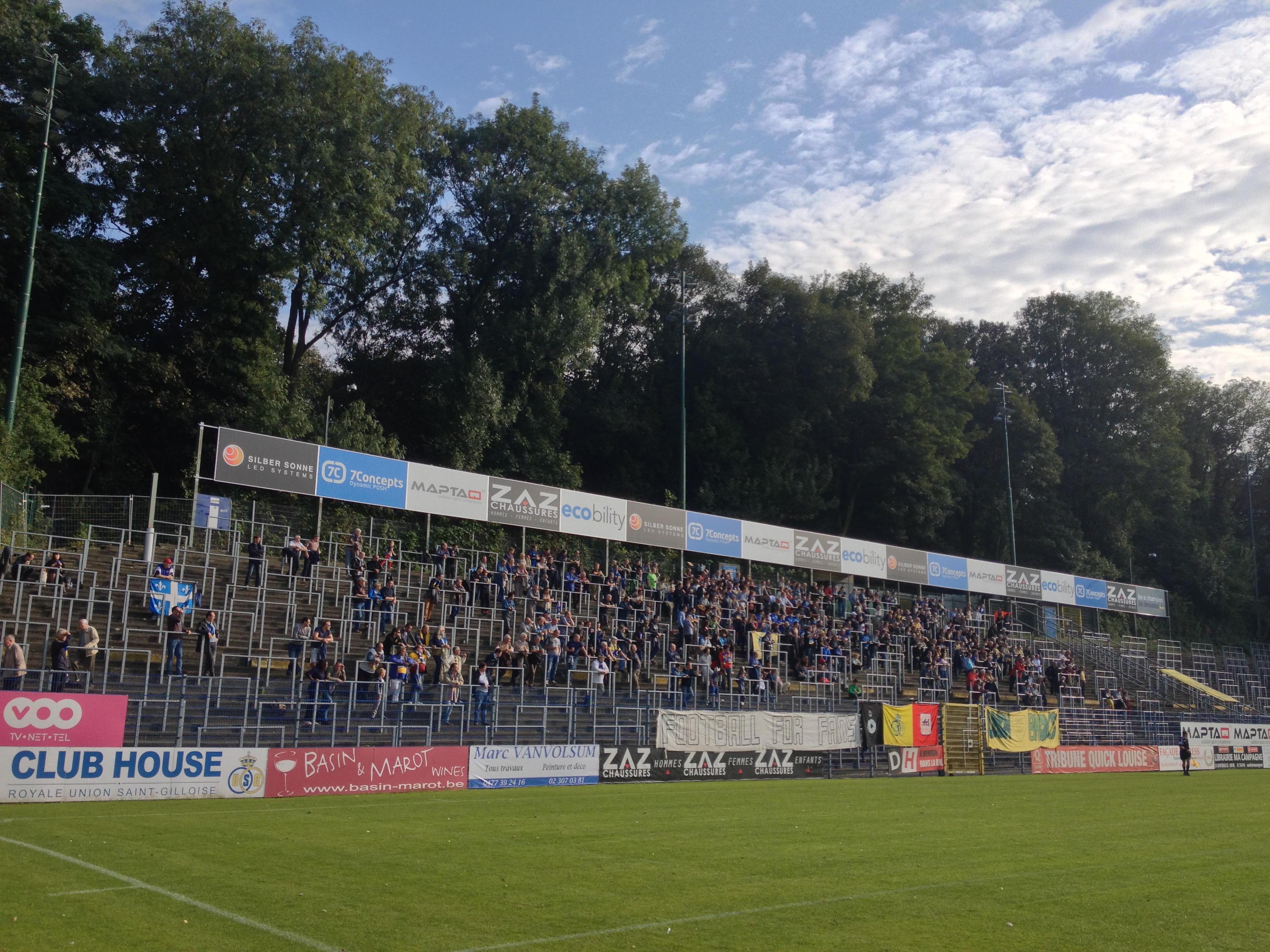 Le bâtiment qui abrite la tribune, les bureaux et lieux d’accueil est surtout remarquable pour sa façade de style « Art déco ». La façade, longue de 101,40 mètres est agrémentée de sept panneaux sculptés, représentant les deux disciplines qui firent la renommée du club saint-gillois, à savoir: l’athlétisme et le football.