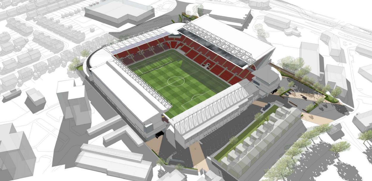 Sa c'est le nouveau stade de Bristol Rovers, rien à voir avec Bristol City football clubactu.stades a écrit :Voici le projet validé du nouveau stade des Bristol Rovers FC.